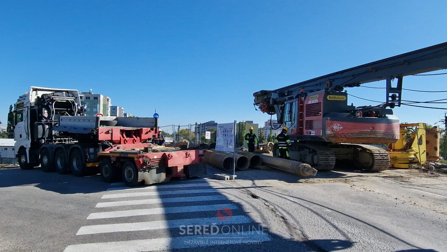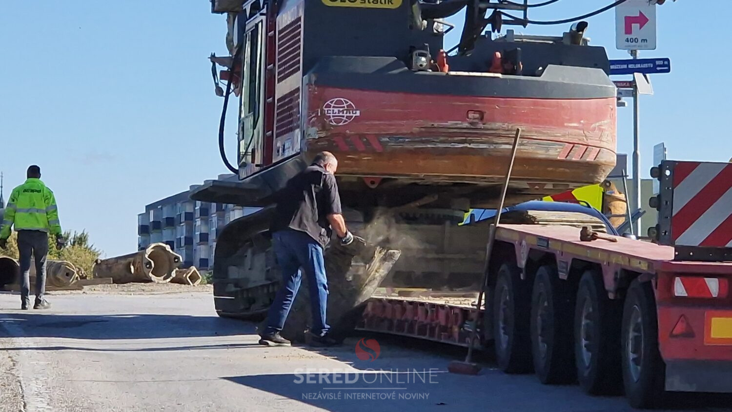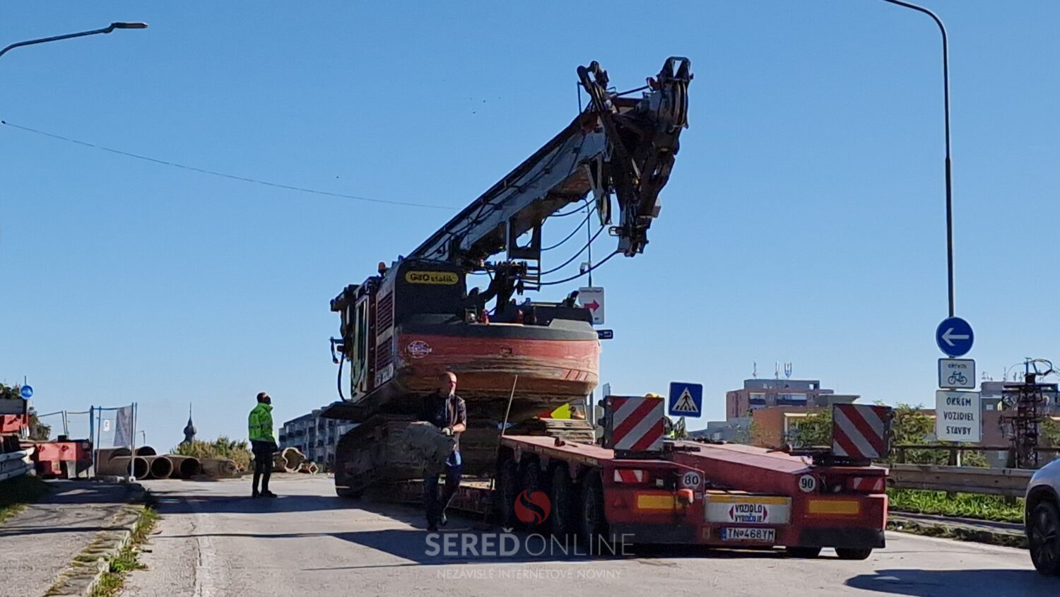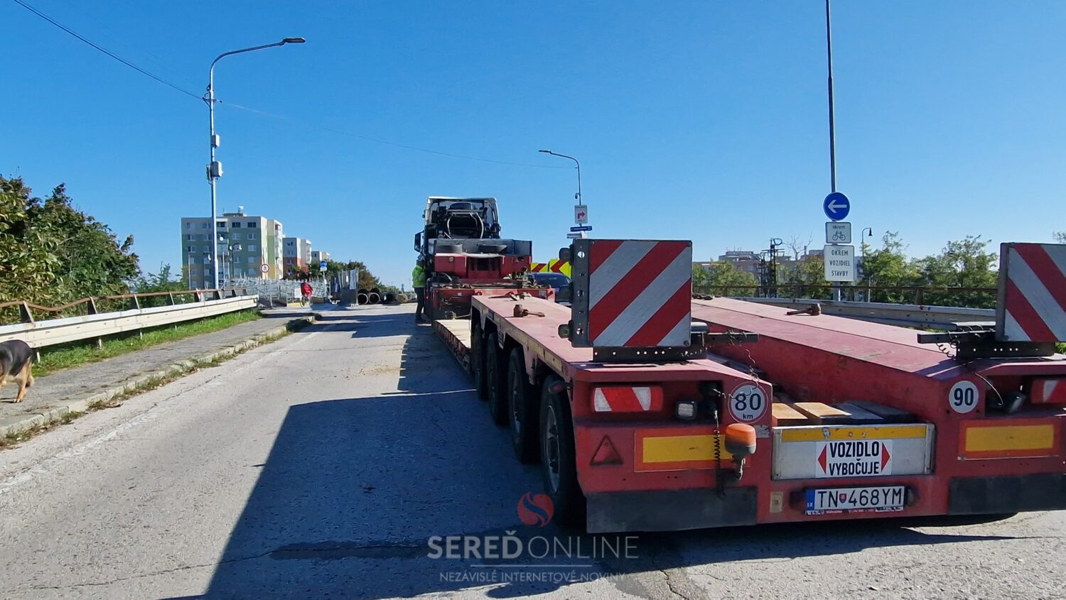 Sereď | Dnes predpoludním na stavenisko nového mosta ponad železnicu v Seredi bol dopravený ďalší stavebný mechanizmus.