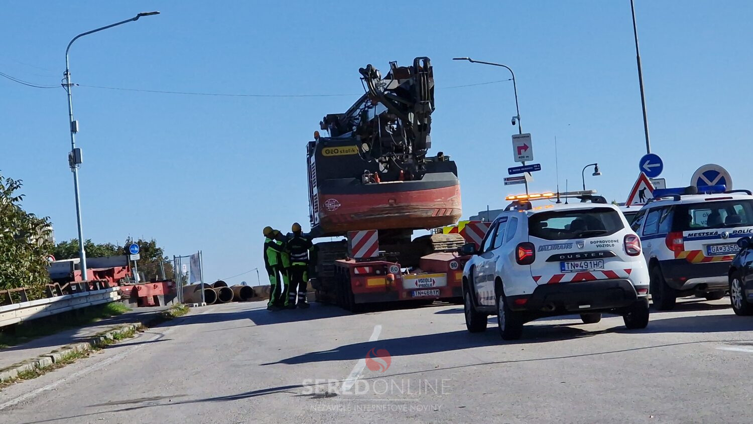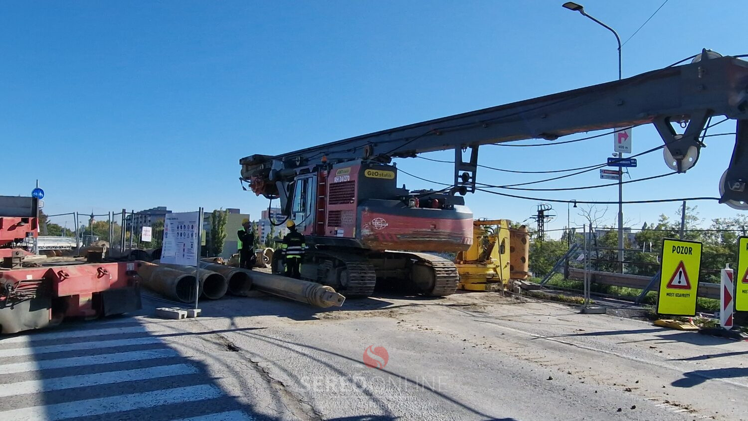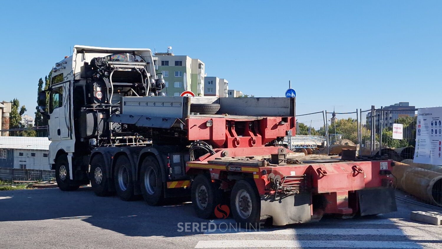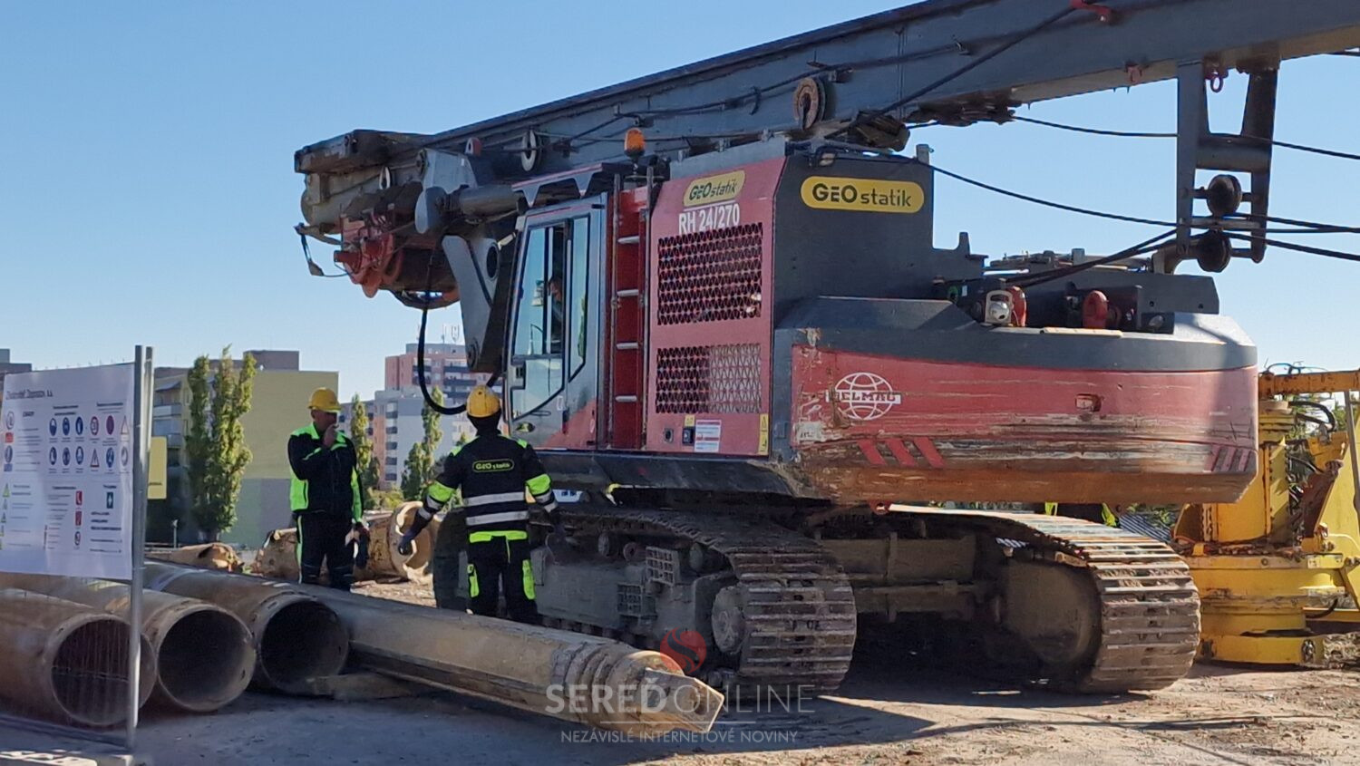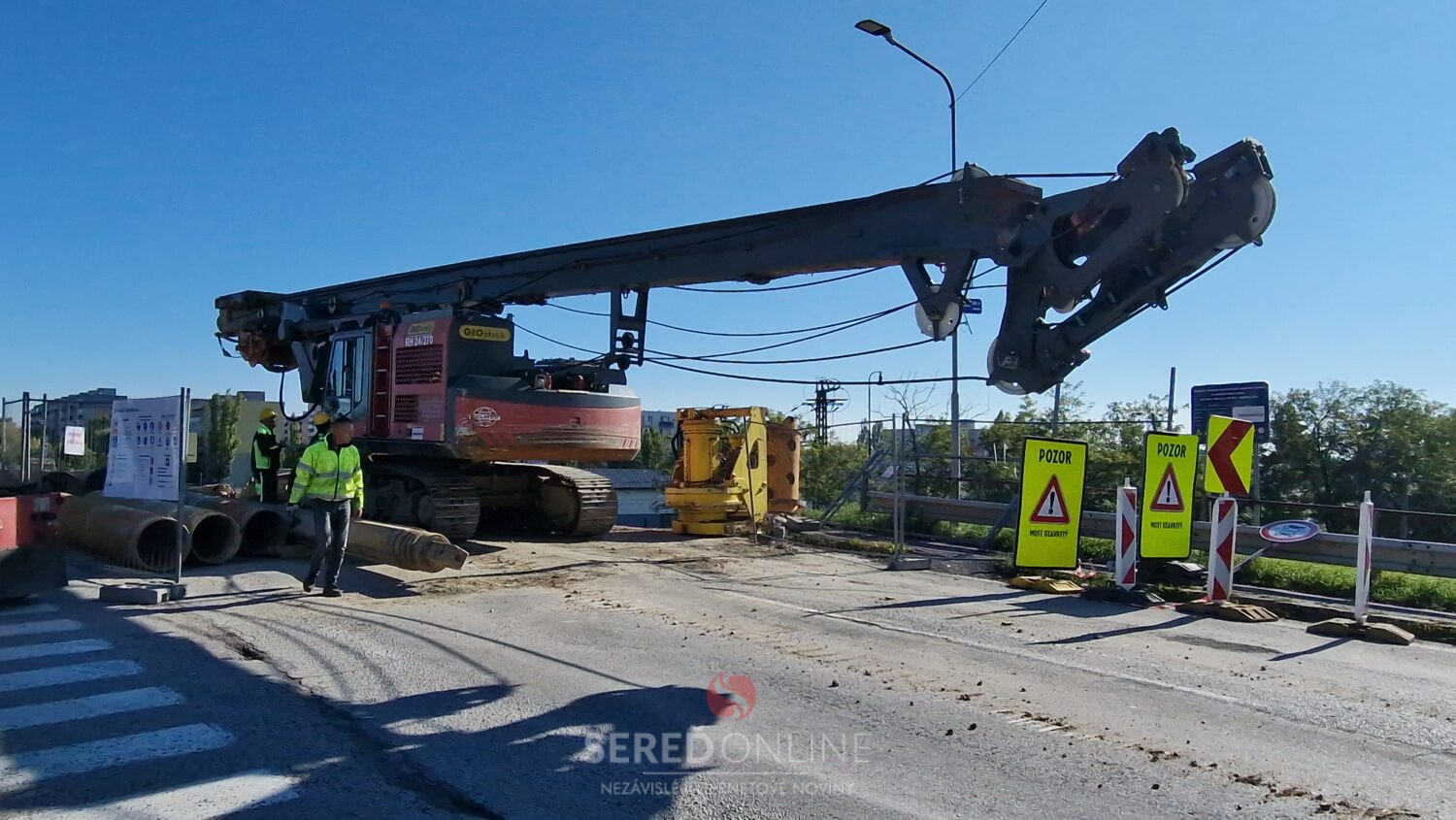 Sereď | Dnes predpoludním na stavenisko nového mosta ponad železnicu v Seredi bol dopravený ďalší stavebný mechanizmus.