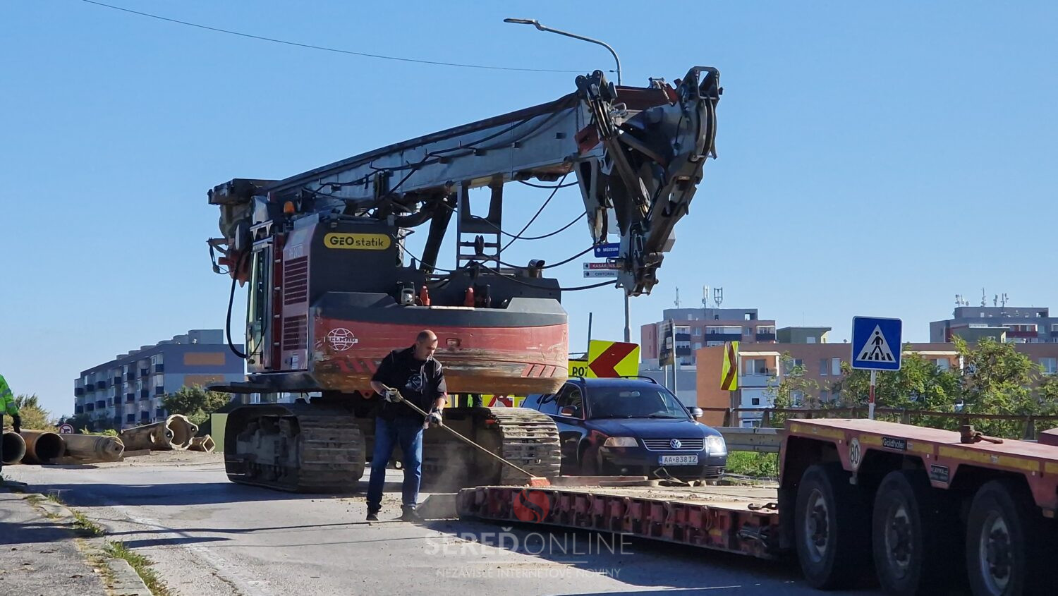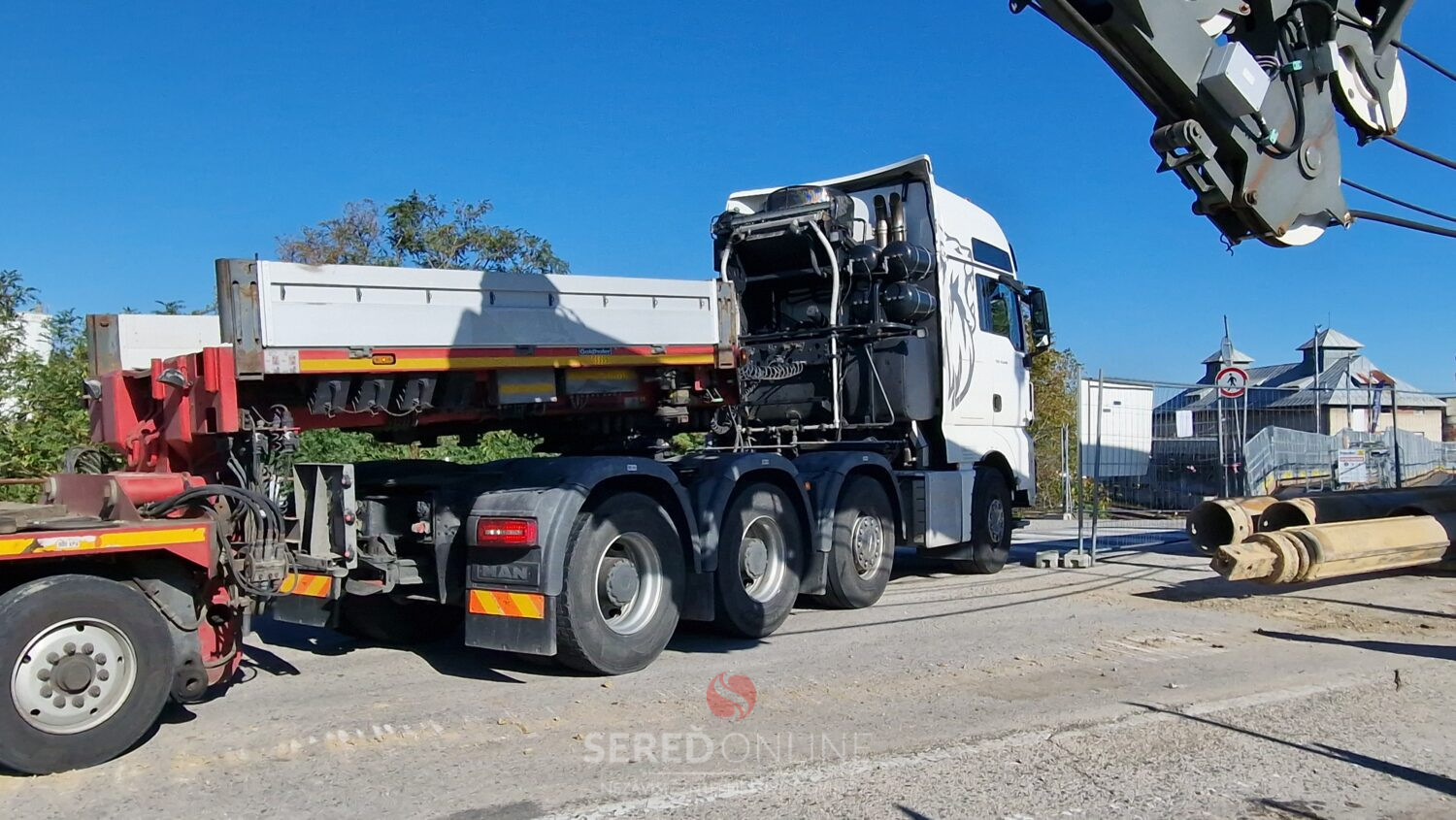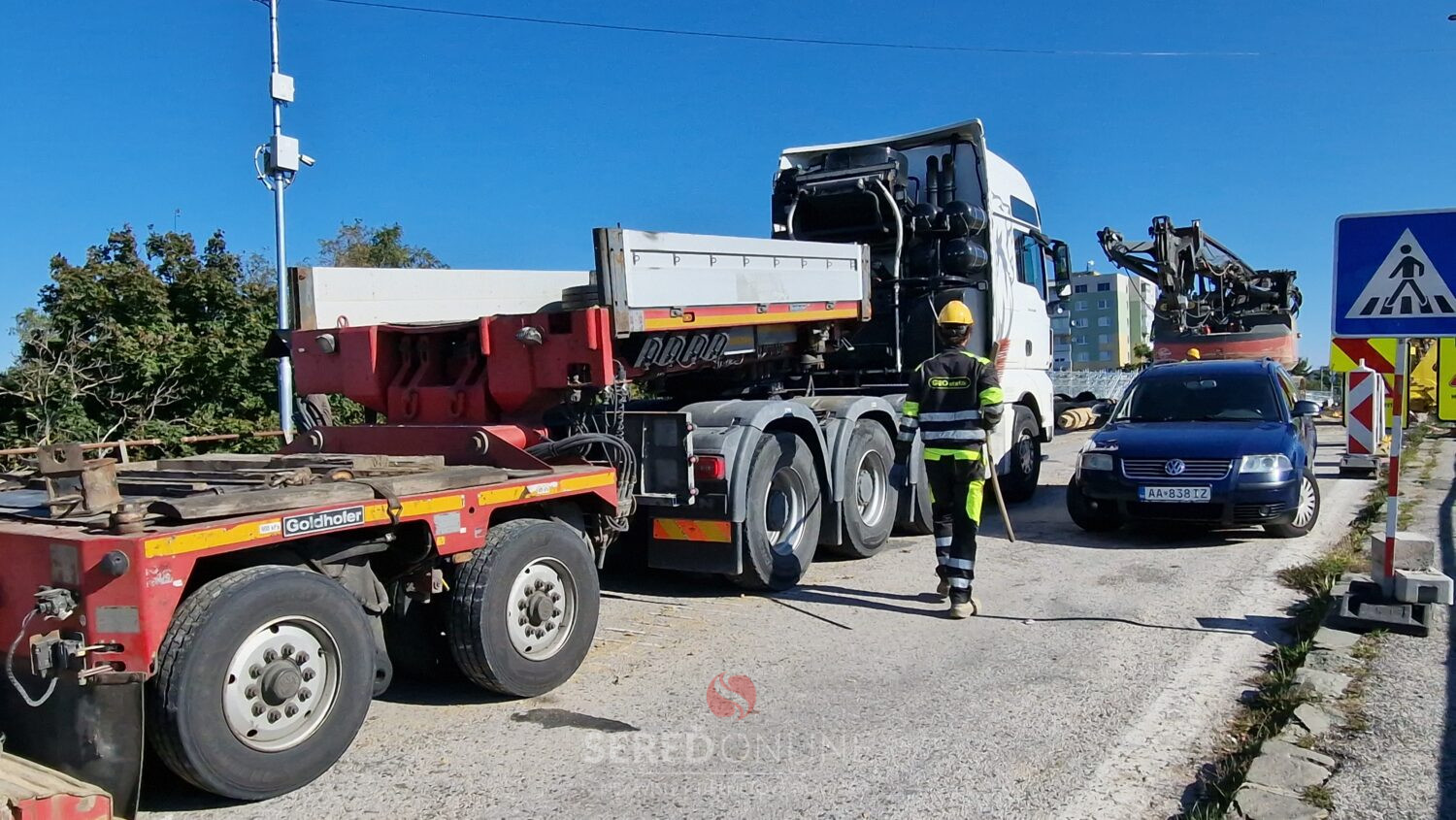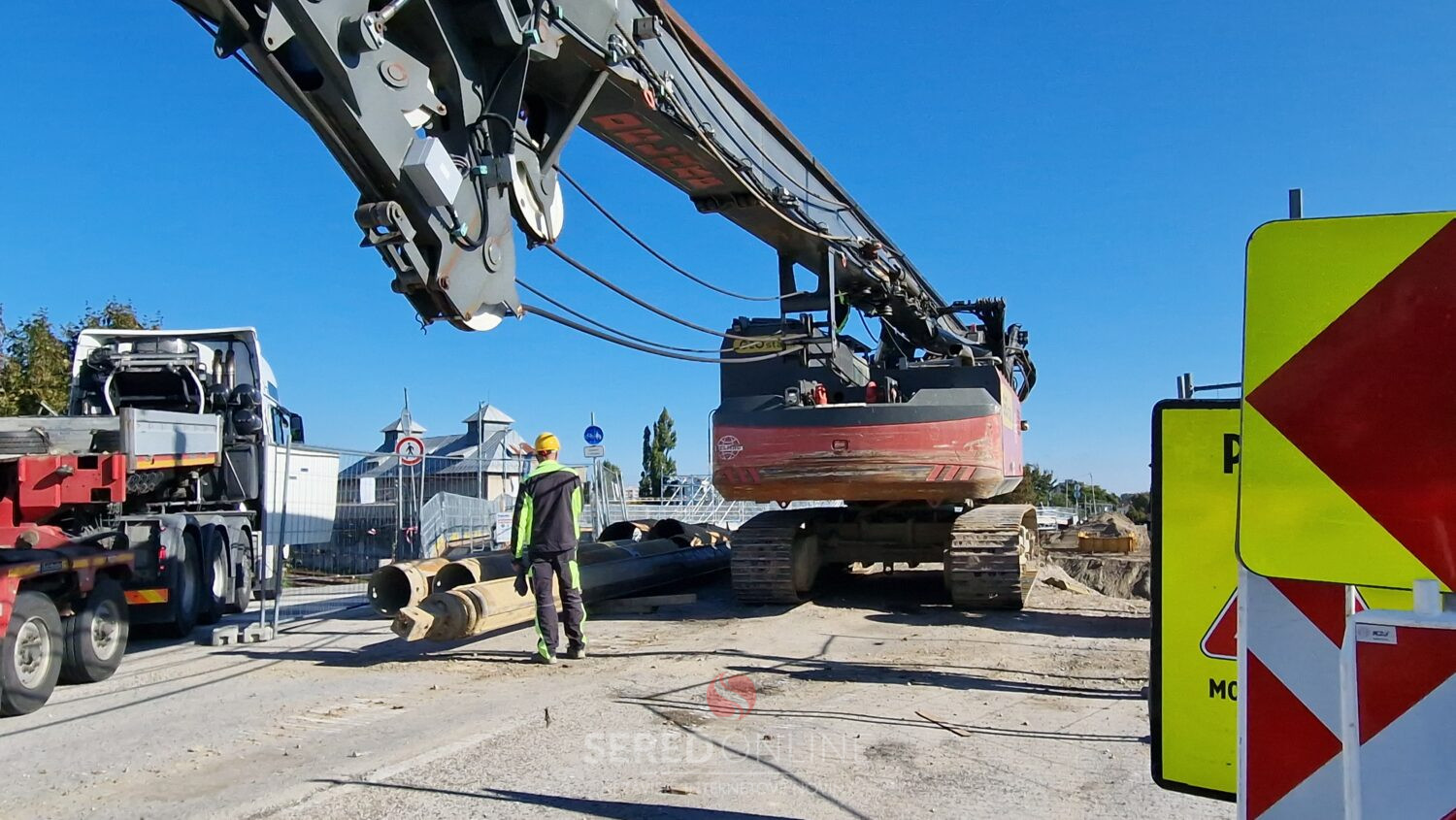 Sereď | Dnes predpoludním na stavenisko nového mosta ponad železnicu v Seredi bol dopravený ďalší stavebný mechanizmus.