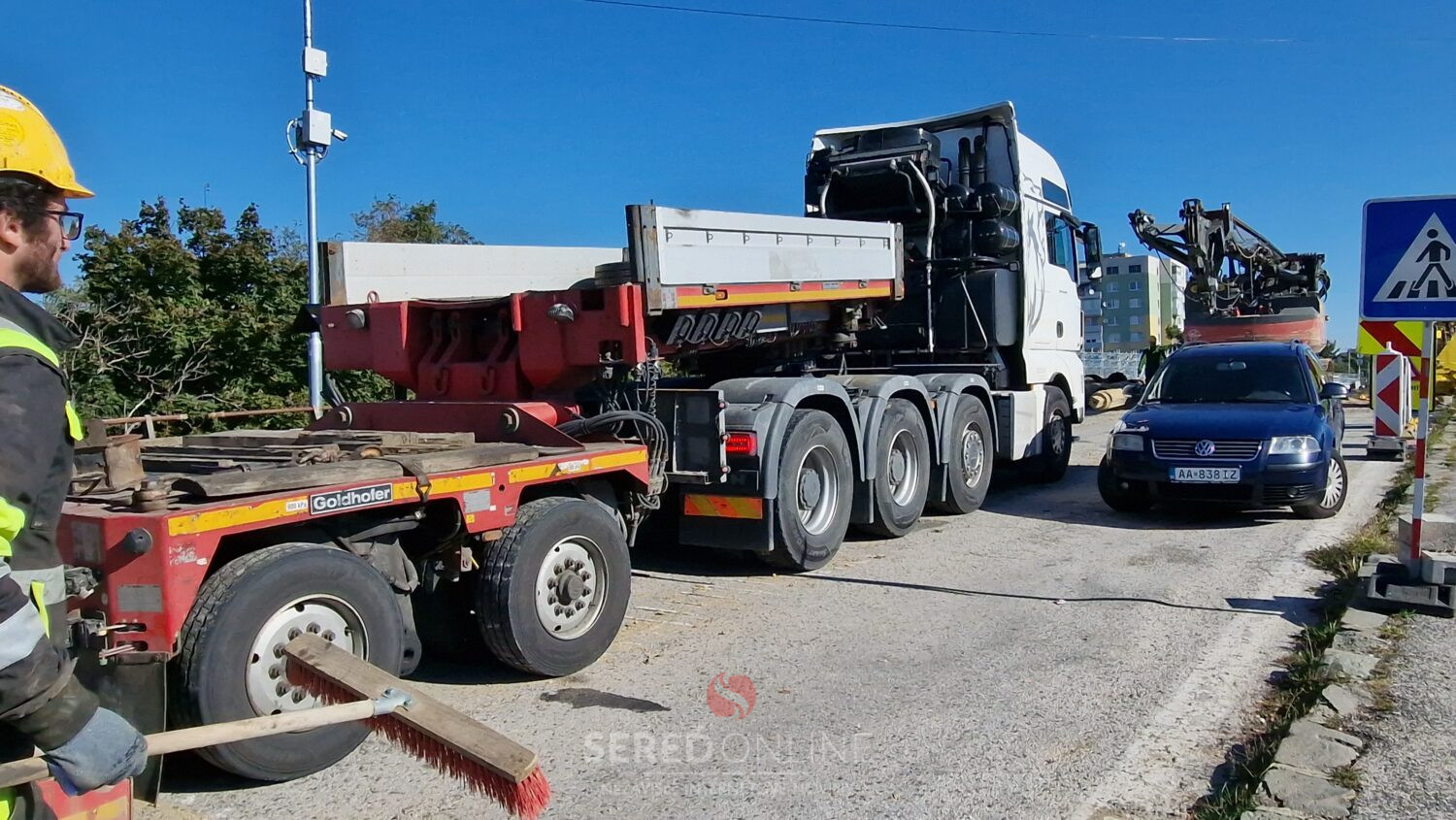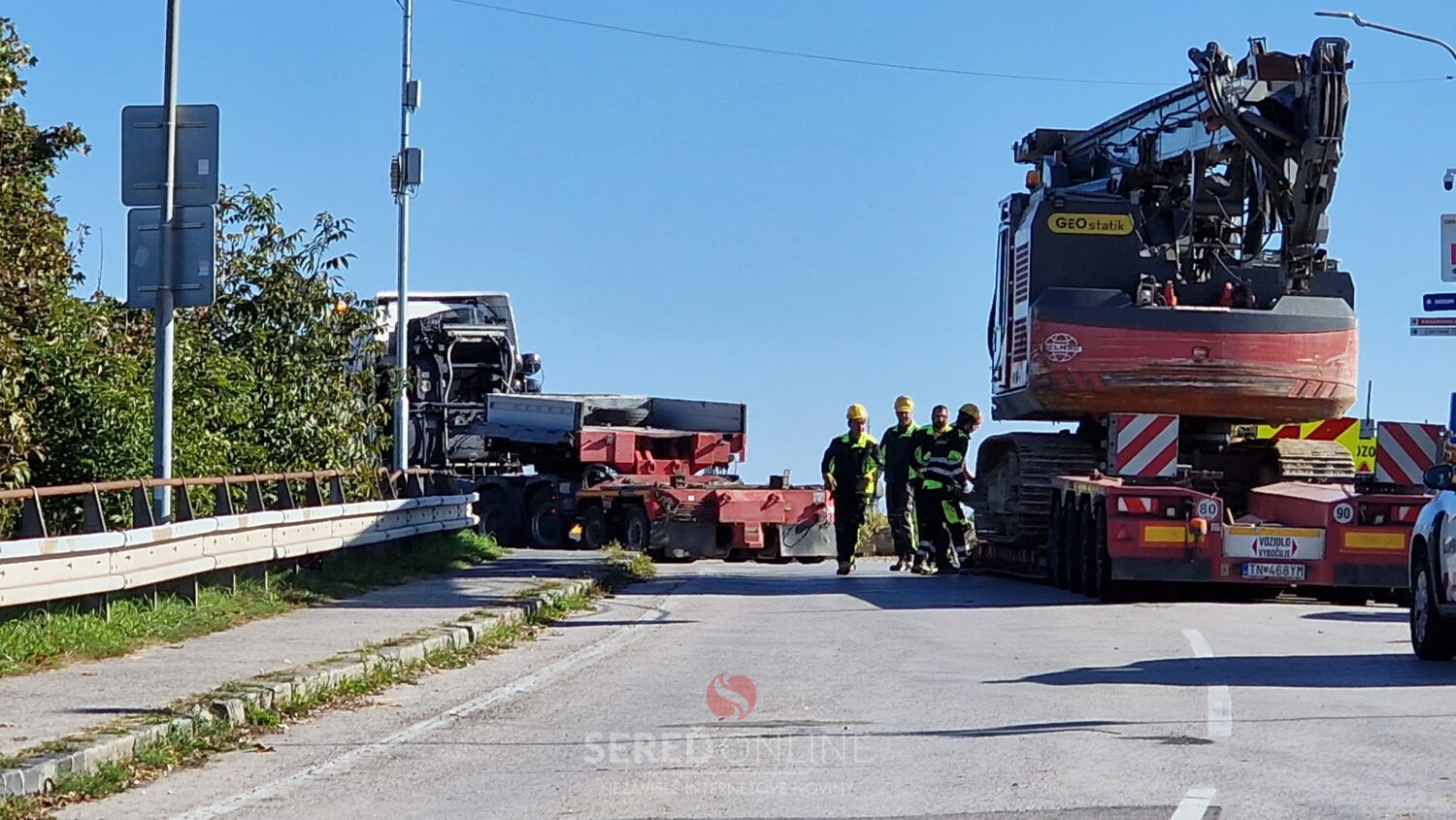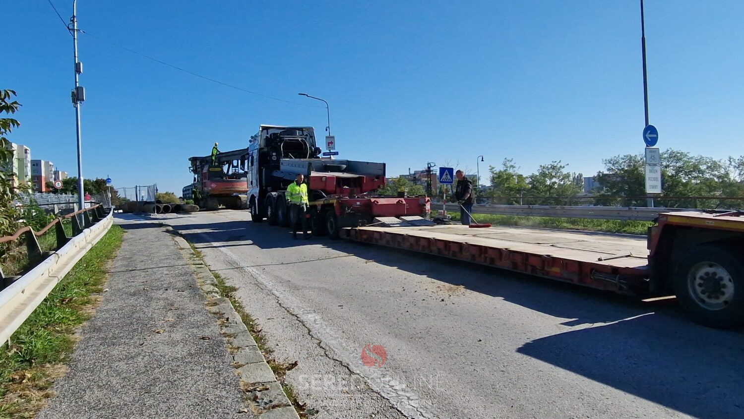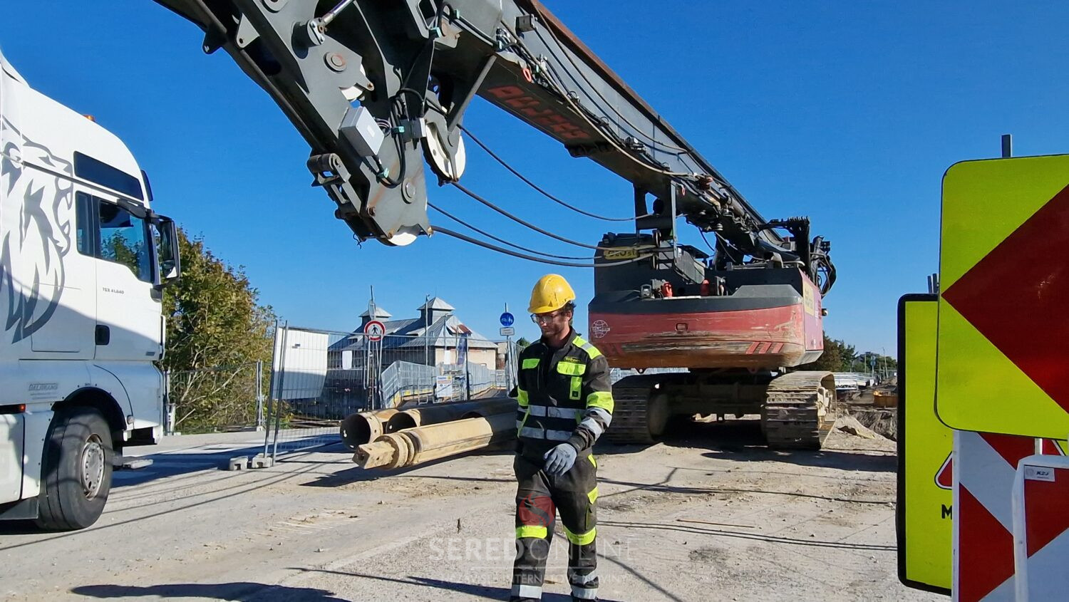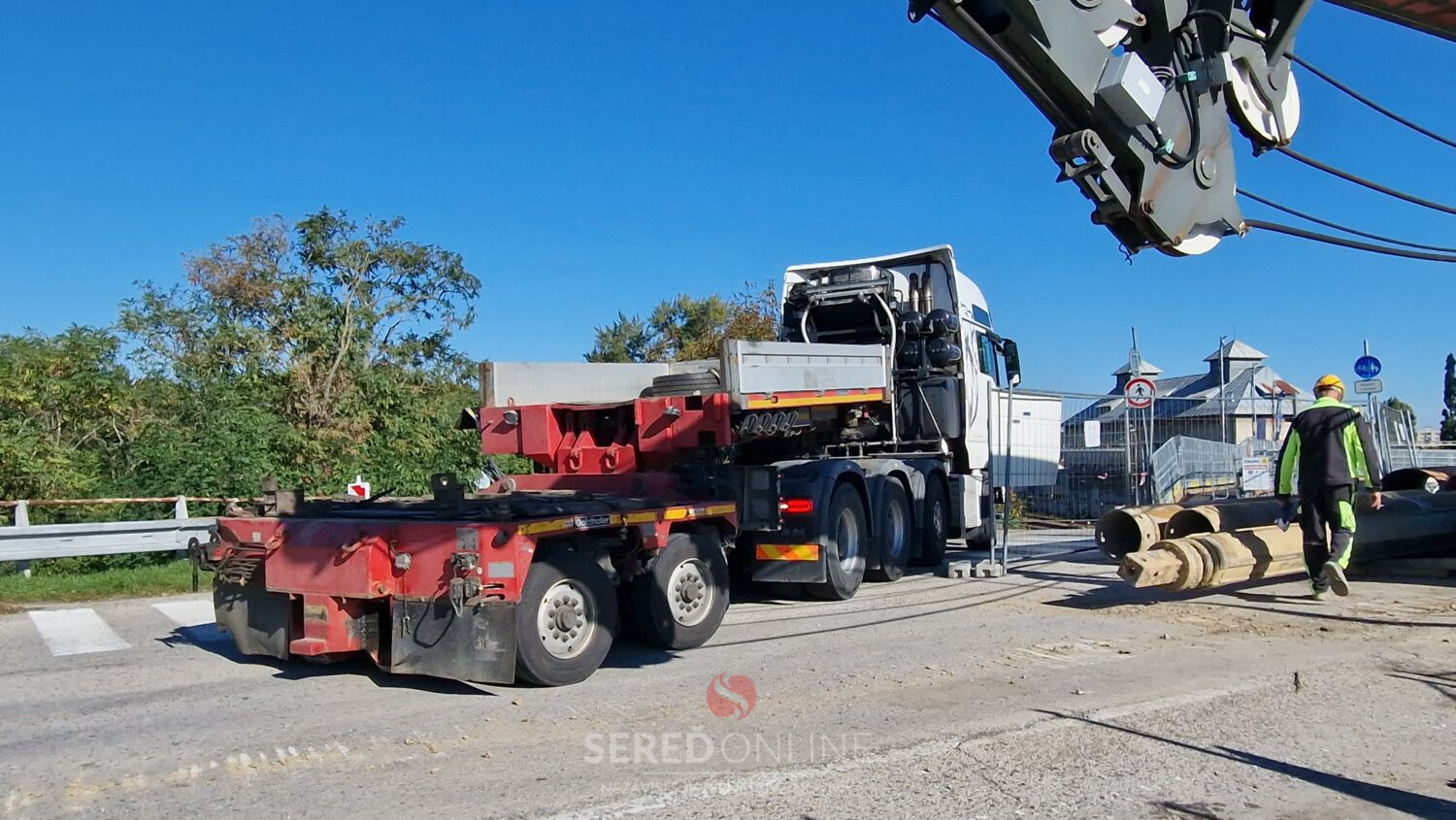 Sereď | Dnes predpoludním na stavenisko nového mosta ponad železnicu v Seredi bol dopravený ďalší stavebný mechanizmus.