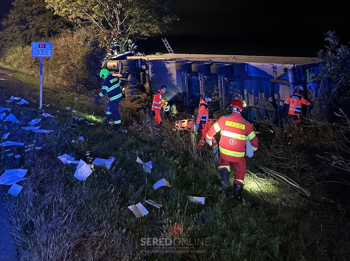 K nehode došlo na diaľnici D1 na 33 km v smere do Bratislavy a o ktorej sme prijali oznam na čísle 158 krátko pred 04,45 h.