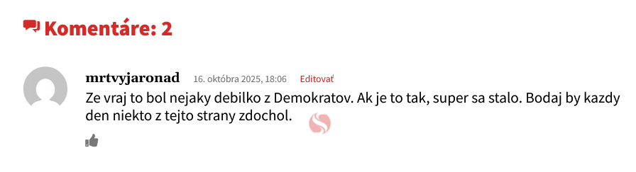 Sa potom nečudujme, že pri úmrtí človeka, takéto primitívne indivíduum dokáže pod článok Tragická nehoda na diaľnici D1. Šofér dodávky bohužiaľ neprežil verejne napísať takýto diskusný príspevok: