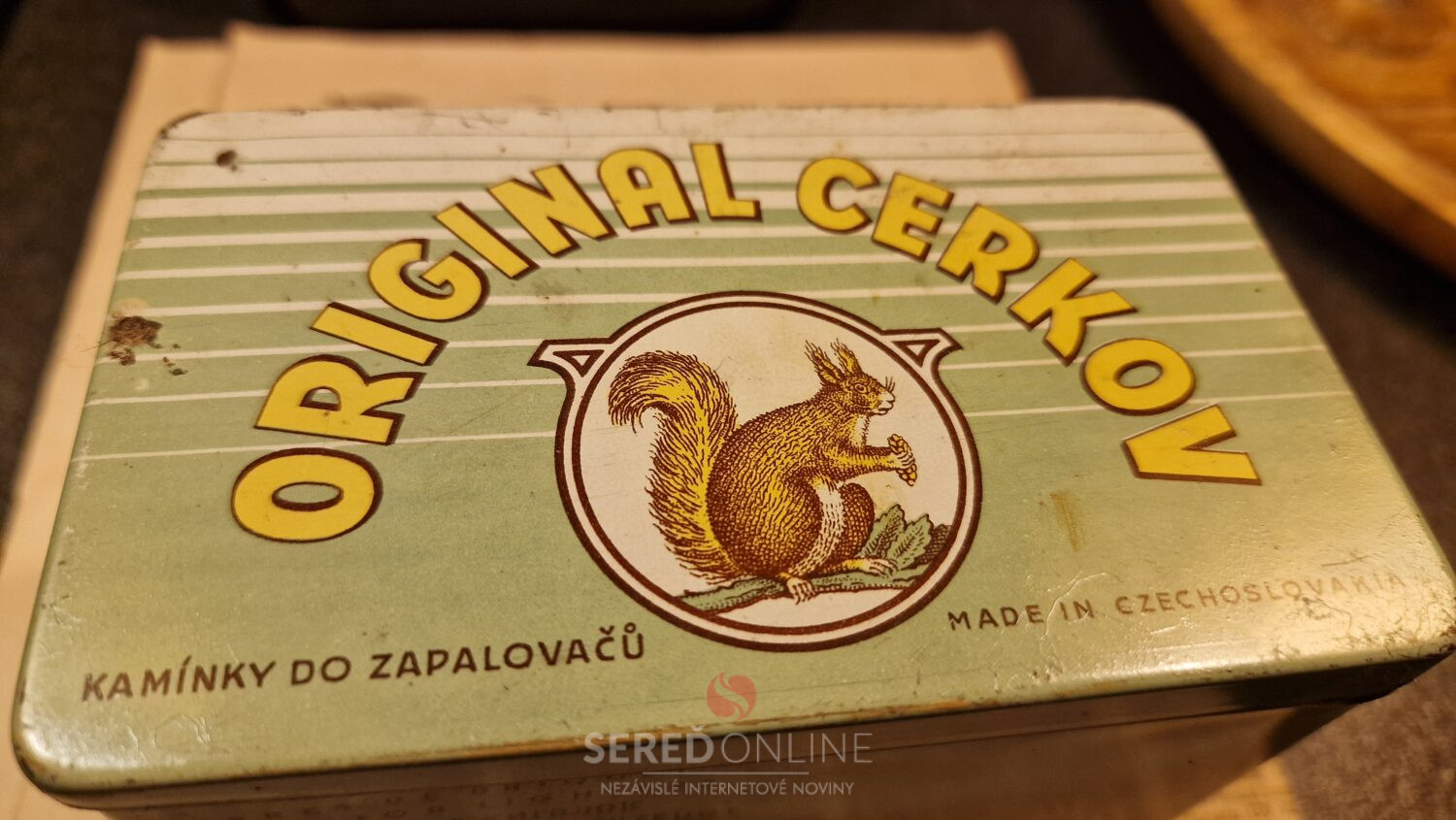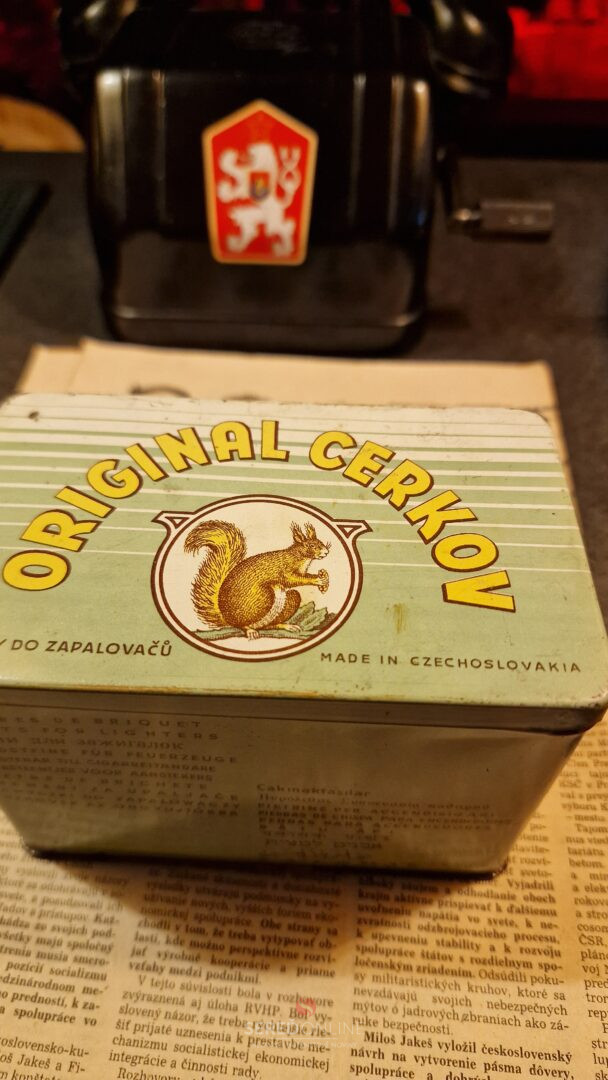 Aj táto mimoriadne zachovalá plechová krabička ORIGINAL CERKOV na kamienky do zapaľovačov z čias socialistického Československa (Made in Czechoslovakia) vďaka darcovi Petrovi Mihalovi z Českej republiky skončila v Múzeu totality.