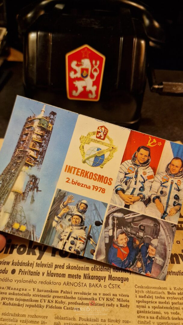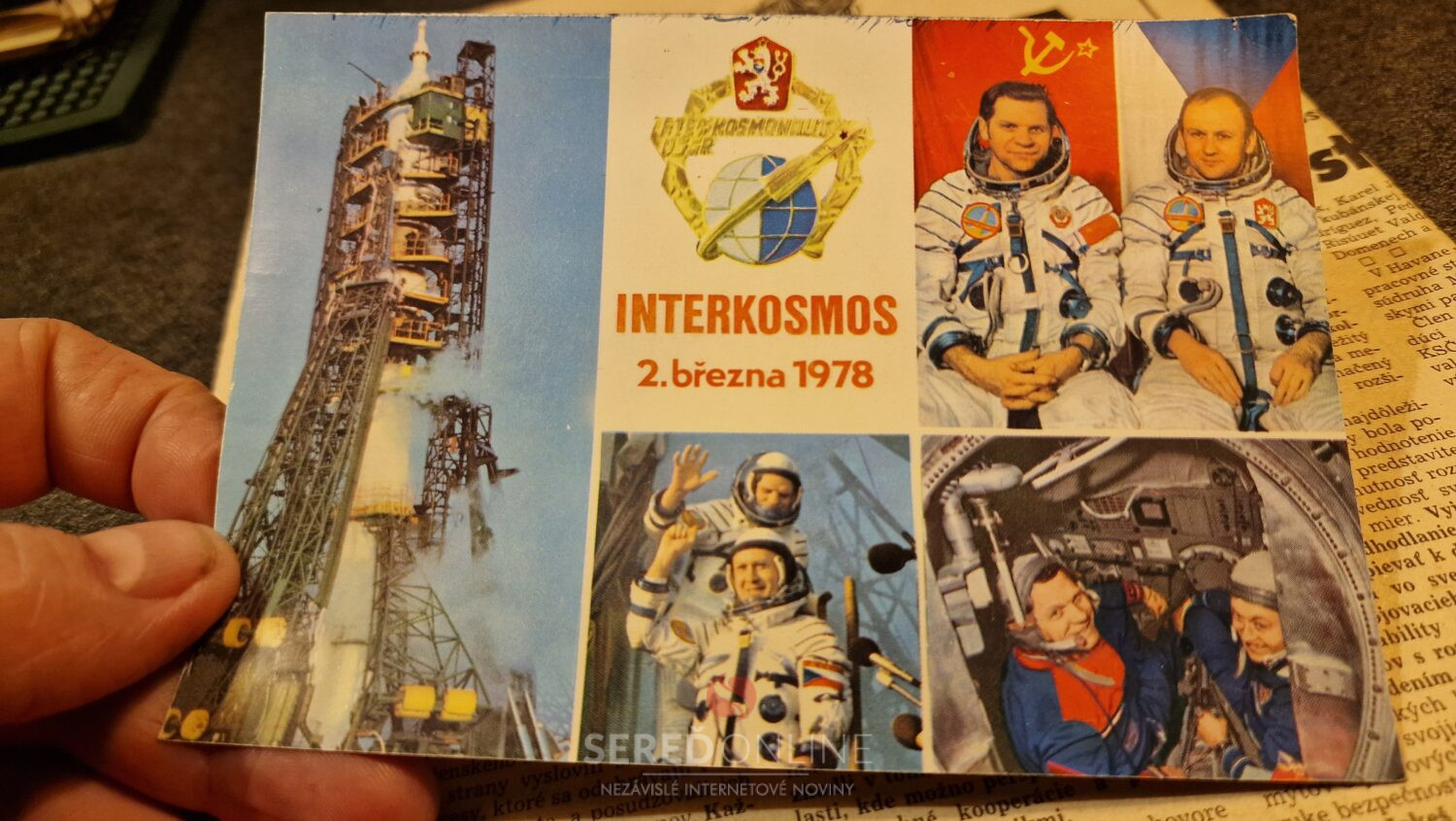 Pohľadnica pamätného letu do vesmíru INTERKOSMOS, ktorý sa datuje na 2. marca 1978. Na palube sovietskej rakety sa nachádzal aj 1. Československý kozmonaut Vladimír Remek.