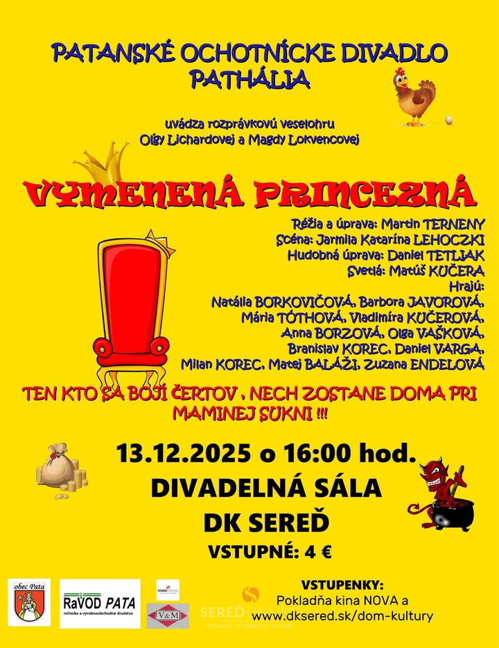 S rozprávkovou veselohrou „VYMENENÁ PRINCEZNÁ“ prichádza do Serede čitateľom už známe patanské ochotníckie divadlo Pathália.