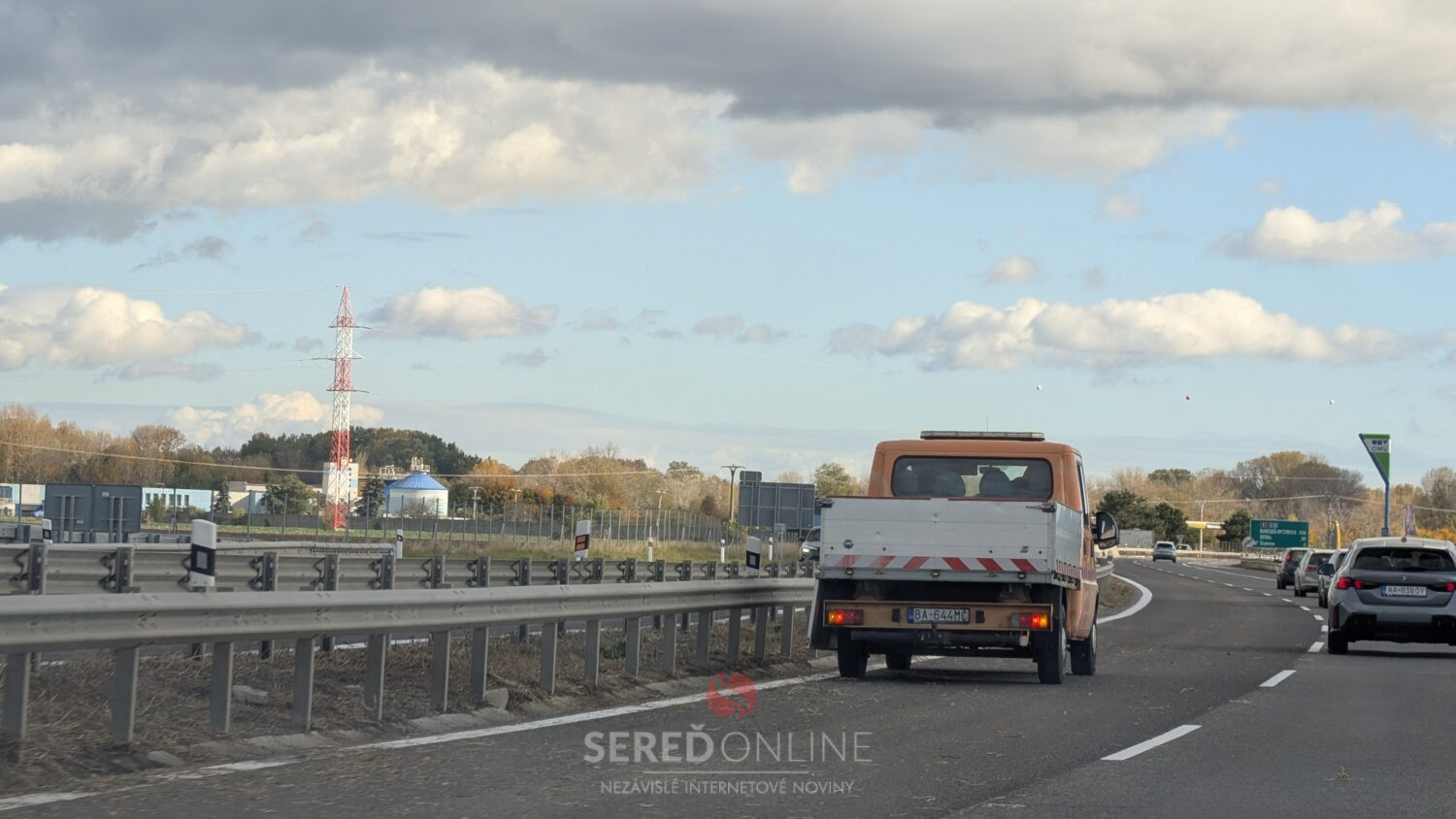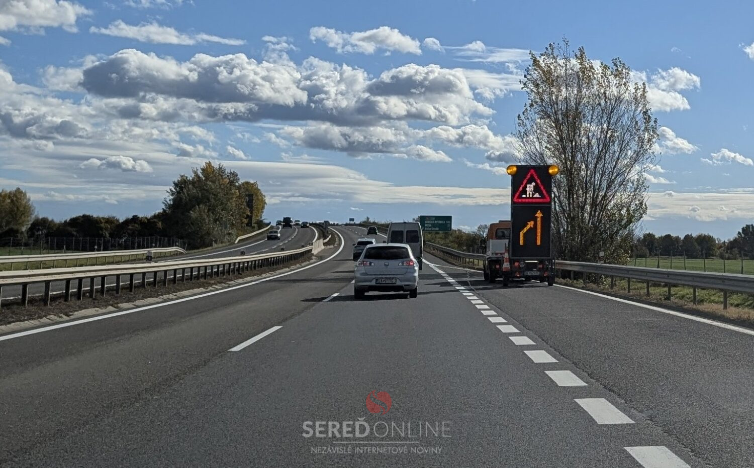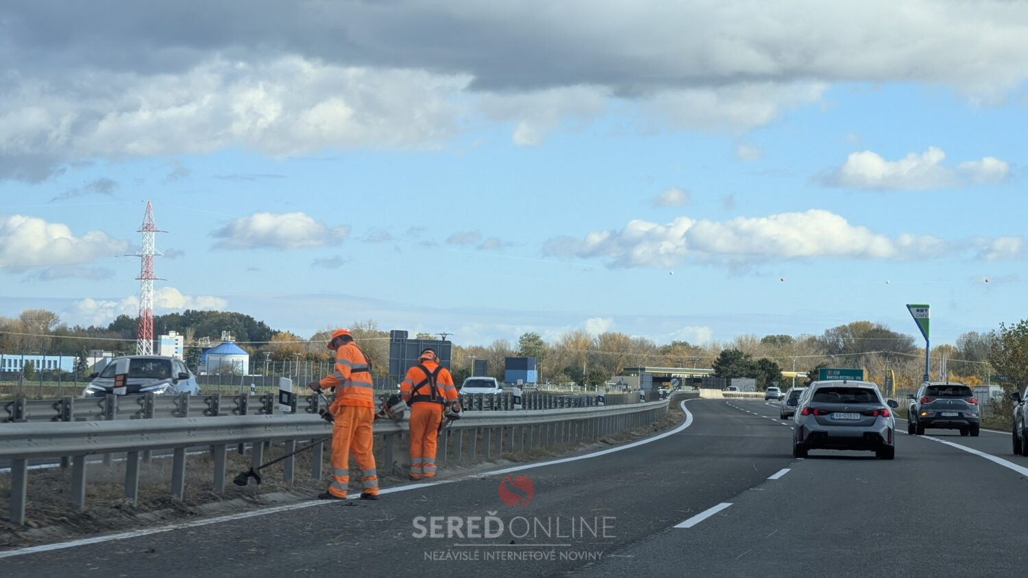 Cestári pracujú v ľavom, predbiehacom jazdnom pruhu a práca na ceste je dostatočne zavčasu vyznačená výrazným svetelným prenosným dopravným značením.