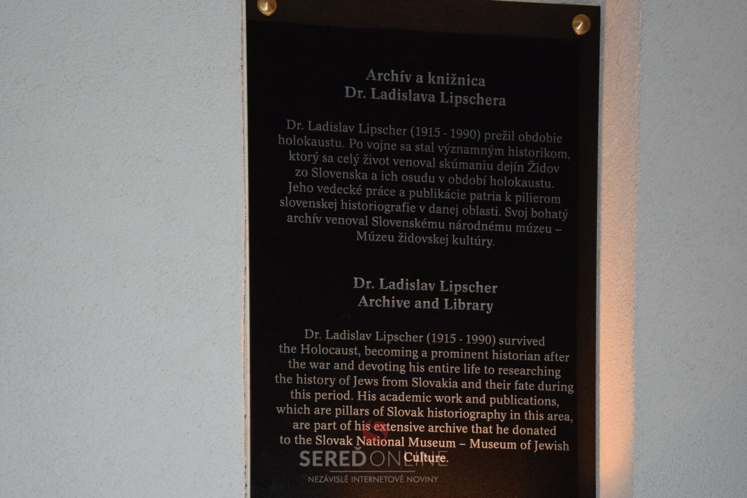 Iveta Tóthová | V Múzeu holokaustu v Seredi bola 27. novembra slávnostne odhalená pamätná tabuľa Dr. Ladislava Lipschera, ktorej meno ponesie archív a knižnica Slovenského národného múzea – Múzea židovskej kultúry – Múzea holokaustu v Seredi. Pomenovanie je poctou historikovi, ktorého celoživotné dielo a osobný príbeh sú úzko späté s osudmi Židov zo Slovenska.