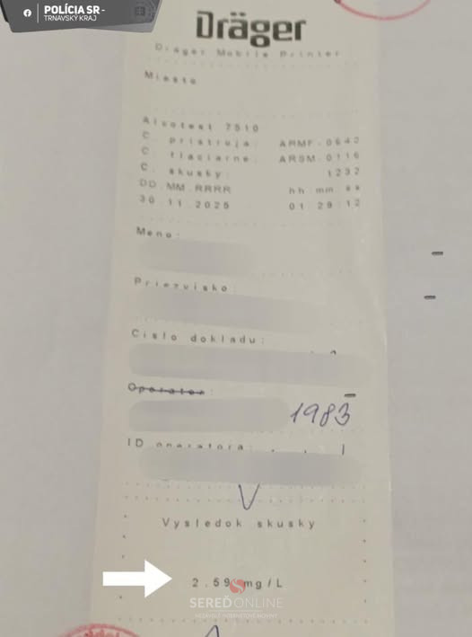 Po výzve policajtov o vykonanie dychovej skúšky prístroj ukázal hodnotu 2,59 mg/l alkoholu v dychu, čo predstavuje neskutočných 5,40 promile. Opakovaná dychová skúška mala hodnotu 2,02 mg/l alkoholu v dychu, čo predstavuje 4,21 promile. Muž bol obmedzený na osobnej slobode a umiestnený v cele policajného zaistenia.