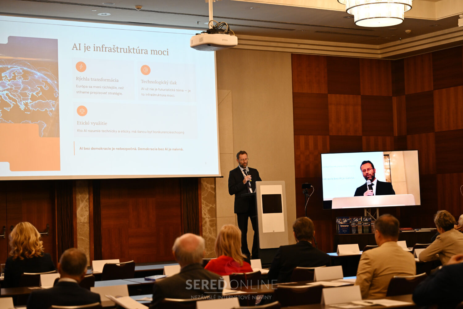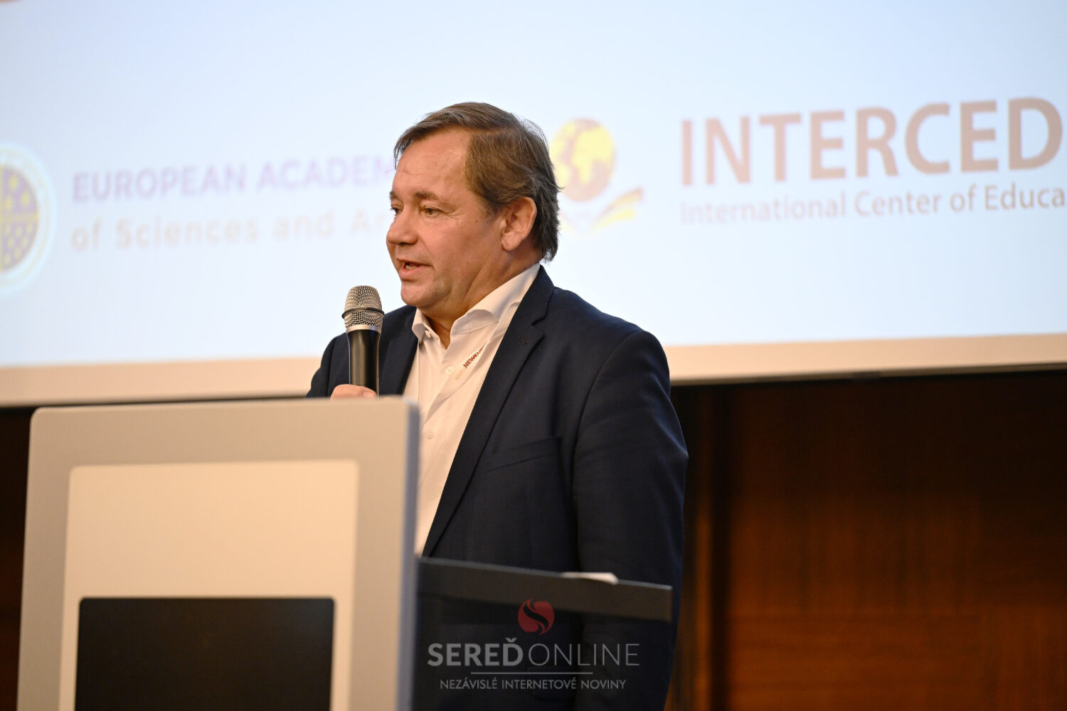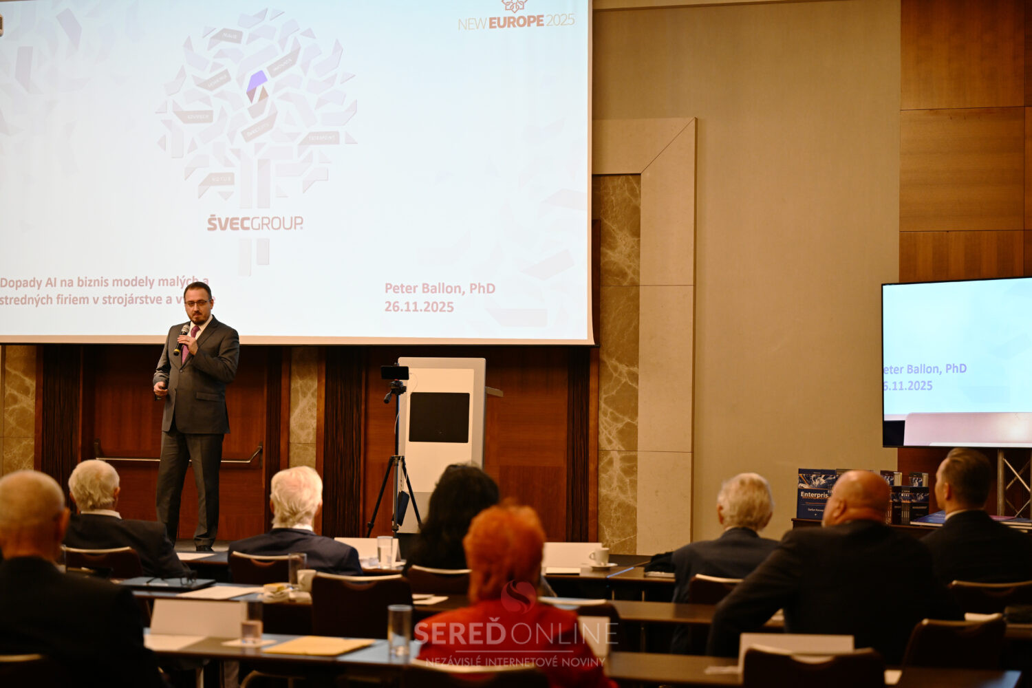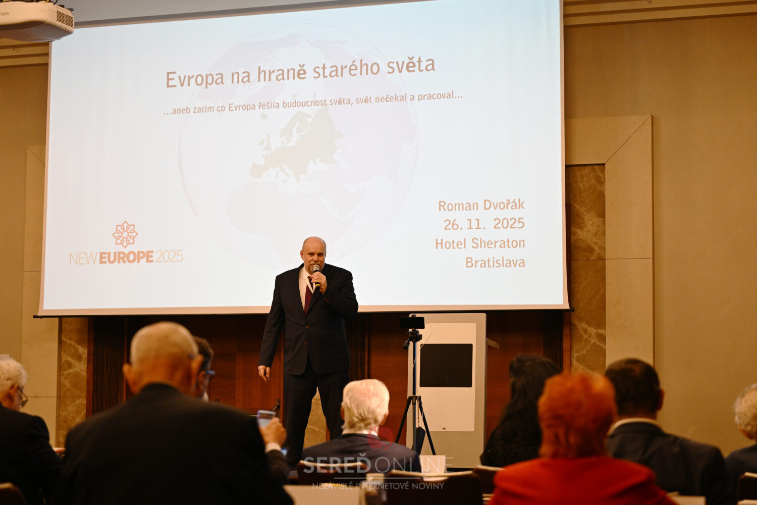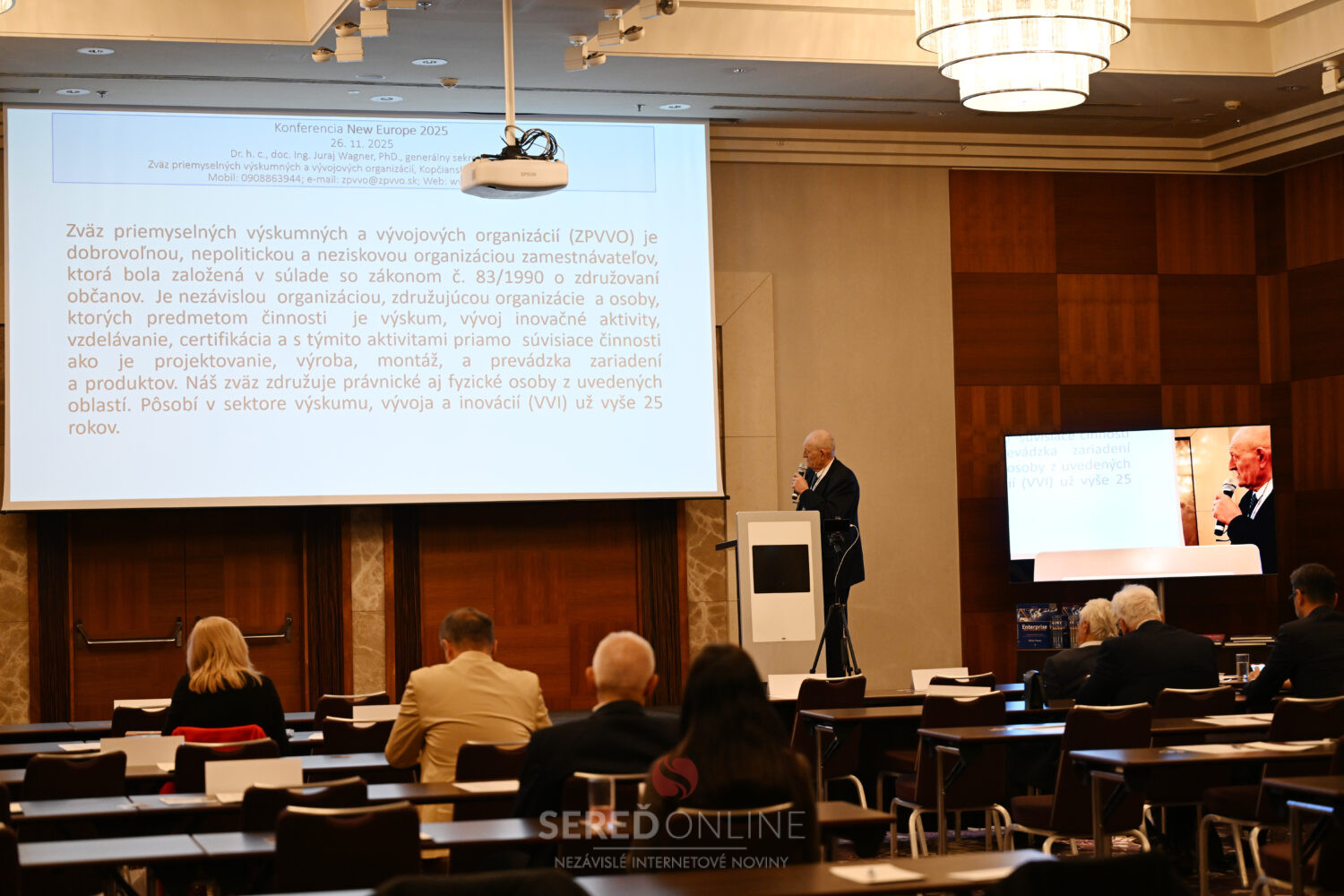 Bratislava, 26.11.2025 | Medzinárodné centrum vzdelávania – INTERCEDU, profesora Štefana Kassaya, pod záštitou Ministerstva hospodárstva SR a Európskej akadémie vied a umení v Salzburgu zorganizovalo konferenciu NEW EUROPE 2025 v priestoroch hotela Sheraton.