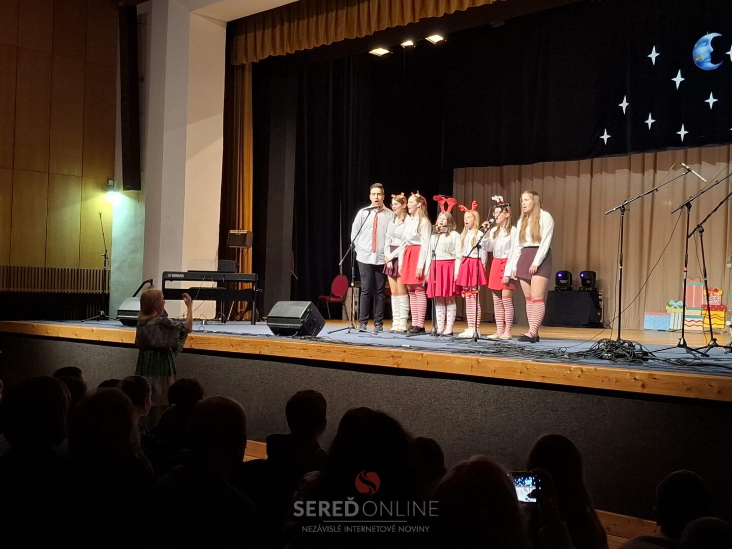Na pódiu sa predstavilo až 110 žiakov zo všetkých umeleckých odborov školy – hudobného, tanečného, výtvarného aj literárno-dramatického. Diváci si mohli vychutnať pestrú mozaiku hudobných vystúpení, tanečných choreografií i scénických ukážok, ktoré spoločne vytvorili príjemnú, sviatočne ladenú atmosféru. Každé číslo nieslo rukopis poctivej prípravy, nadšenia a radosti.Večer bol zároveň pripomenutím mimoriadneho nasadenia učiteľov a zamestnancov školy pod vedením riaditeľky Dagmar Šajbidorovej, ktorí sa podieľajú na organizácii projektu. Zvládnuť tak široký program si vyžaduje dôslednú prípravu a obetavú spoluprácu – čo sa aj tentoraz prejavilo v precízne zvládnutom vystúpení. „Naši žiaci a pedagógovia pripravili program, na ktorý môžeme byť všetci hrdí. Každoročne sa snažíme priniesť do adventného obdobia posolstvo dobra, lásky a vzájomnej podpory. Som nesmierne vďačná celému pedagogickému kolektívu za ich zanietenosť a trpezlivú prácu, ktorá stojí za týmto krásnym podujatím,“ uviedla nám po predstavení riaditeľka D. Šajbidorová. Záver programu patril všetkým účinkujúcim, ktorí sa pri spoločnej klaňačke dočkali dojímavej odozvy publika. Neutíchajúci potlesk bol tou najkrajšou odmenou za ich snahu, odhodlanie a vystúpenie, ktoré prinieslo sále pravú predvianočnú atmosféru.
