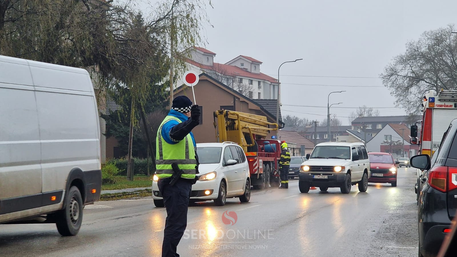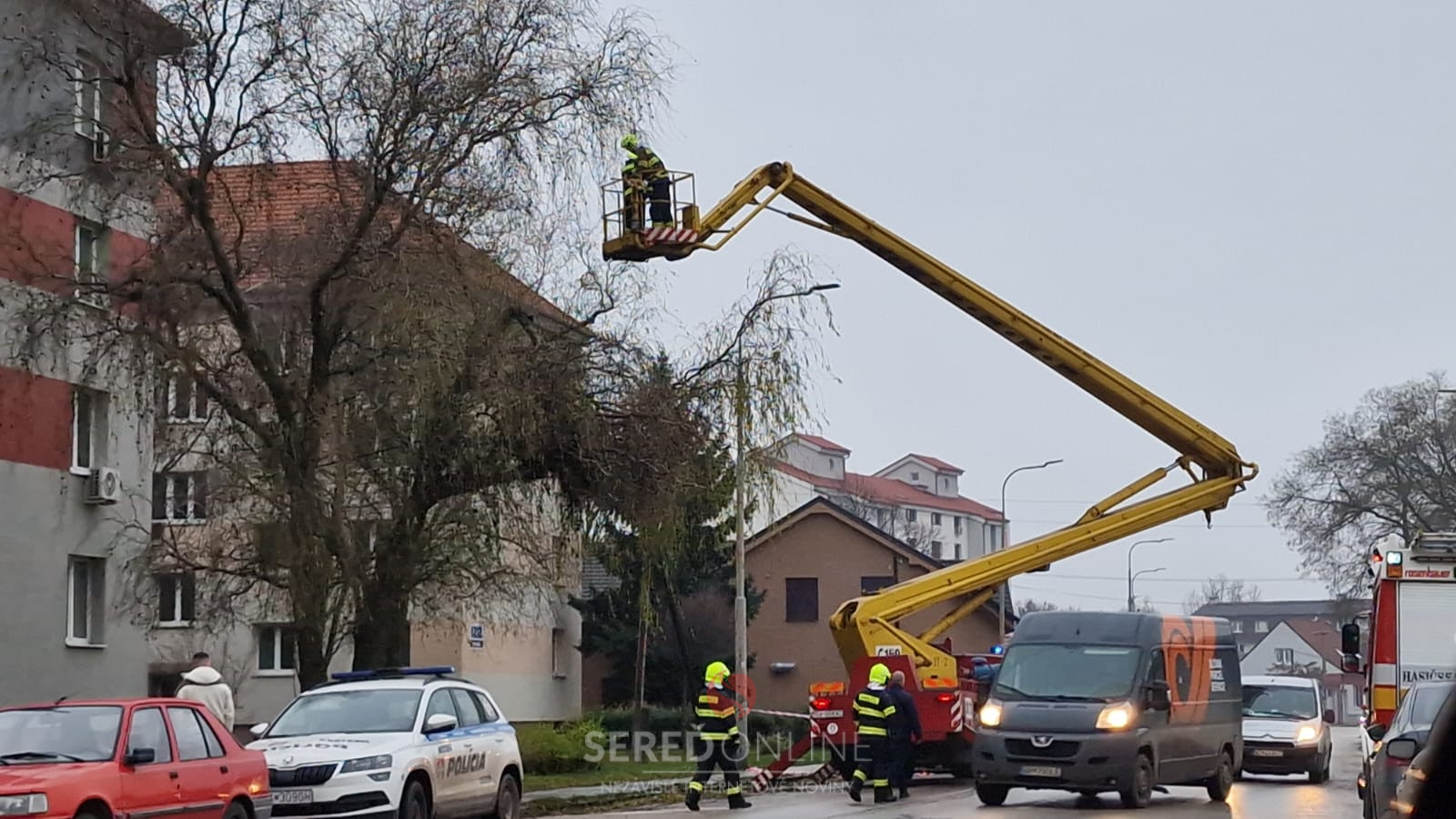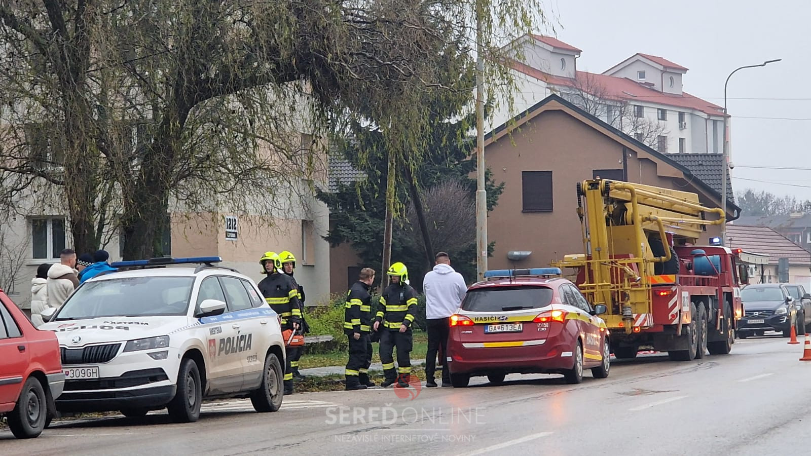 Na mieste zásahu sa nachádza jednotka HaZZ zo Serede a vysokozdvižná plošina. Jazdný pruh v smere od Čepeňa do centra mesta blokuje hasičská technika, preto rešpektujte inštrukcie Mestskej polície.