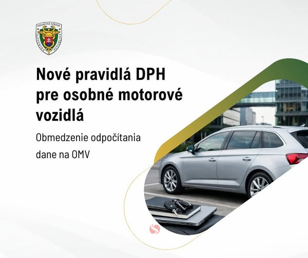 FS SR |MM|  Od 1. januára 2026 sa menia pravidlá odpočtu DPH pri osobných OMV. Plný odpočet (100 %) bude možný len pri vozidlách používaných výlučne na podnikanie a pri vedení podrobných záznamov. Pri kúpe nového vozidla od uvedeného dátumu je navyše povinnosť zaslať oznámenie daňovému úradu na predpísanom tlačive.