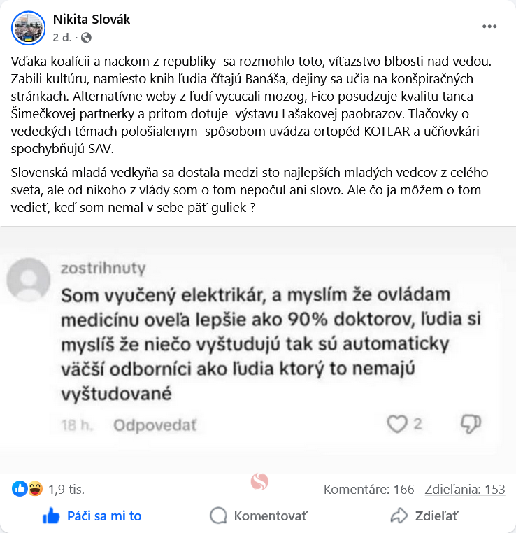 Asi takáto otázka napadne asi väčšinu príčetných jedincov pri prečítaní si statusu takéhoto „intelektuála“…