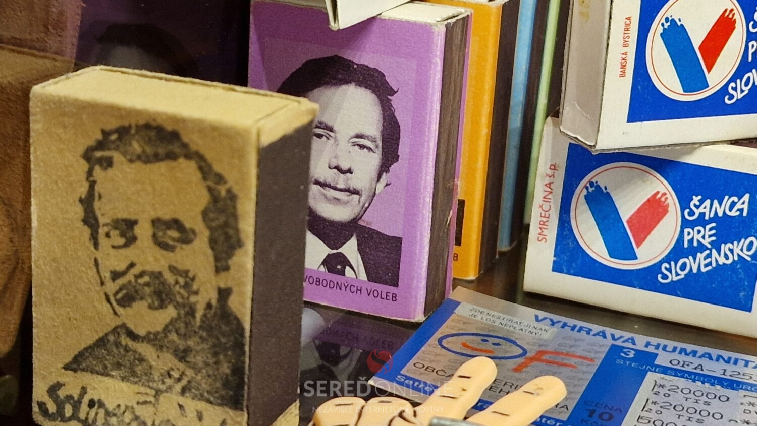 Originálne zápalky s portrétom prezidenta Václava Havla sú už dlhšiu dobu vystavené vo vitríne Múzea totality.