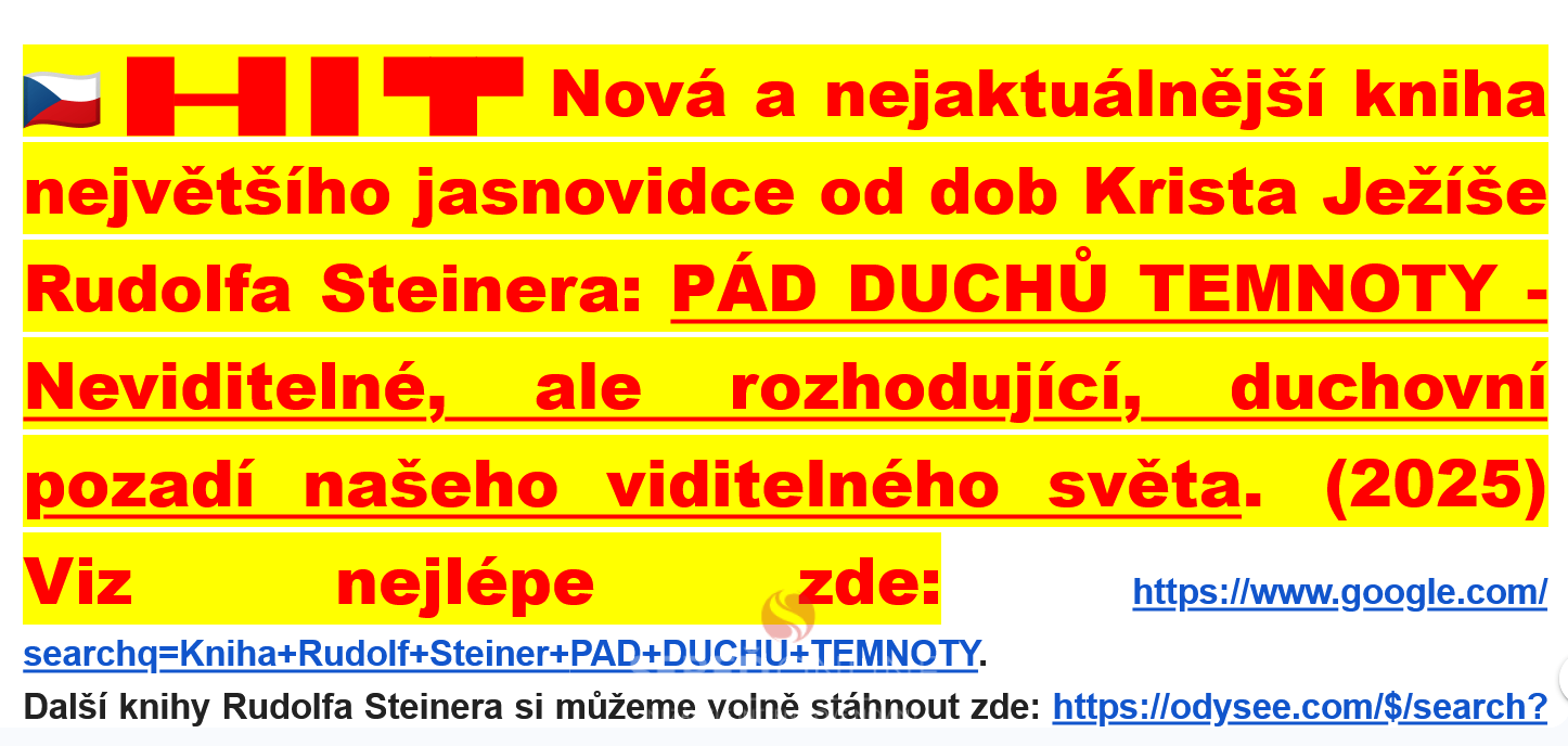 🇨🇿 █▬█ █ ▀█▀ Nová a nejaktuálnější kniha největšího jasnovidce od dob Krista Ježíše Rudolfa Steinera: PÁD DUCHŮ TEMNOTY – Neviditelné, ale rozhodující, duchovní pozadí našeho viditelného světa. (2025) Viz nejlépe zde: https://www.google.com/searchq=Kniha+Rudolf+Steiner+PAD+DUCHU+TEMNOTY.