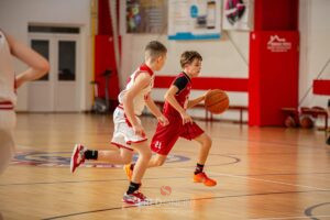 Od úvodu sme pôsobili veľmi rozpačito, bojácne a miestami až príliš pod tlakom, čo vyústilo do núteného oddychového času už v tretej minúte stretnutia. Po ňom sa však obraz hry zmenil. Chalani nastúpili odhodlane pobiť sa o výsledok, začali hrať kolektívne bez strachu, lepšie doskakovali, bránili a premieňali jednoduché koše. Zápas bol po celý čas vyrovnaný, hralo sa vo vysokom tempe zo strany na stranu a na polčasovú prestávku sme odchádzali s tesným skóre.