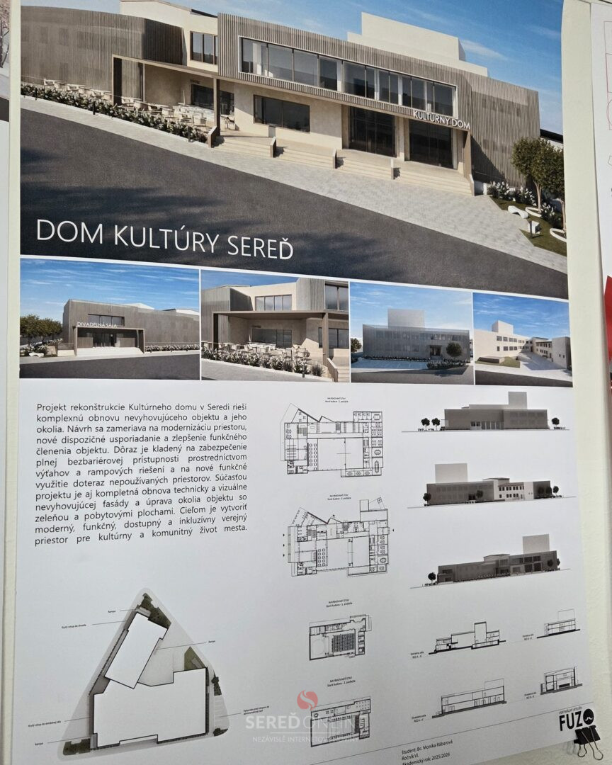 Mal som možnosť zúčastniť sa obhajob semestrálnych prác študentov Fakulty architektúry a dizajnu STU, ktoré sa venovali návrhom obnovy Domu kultúry v Seredi.