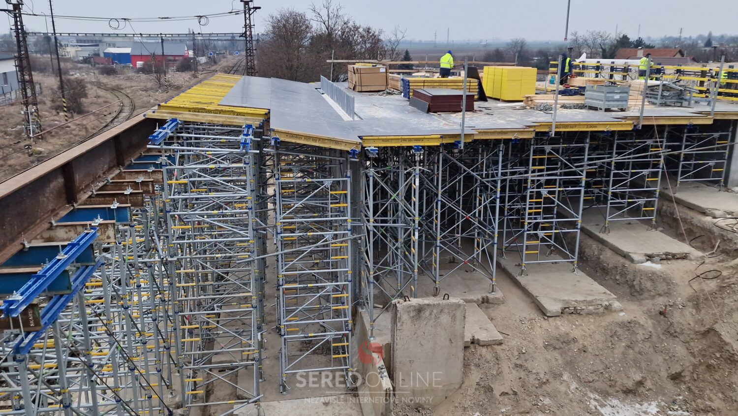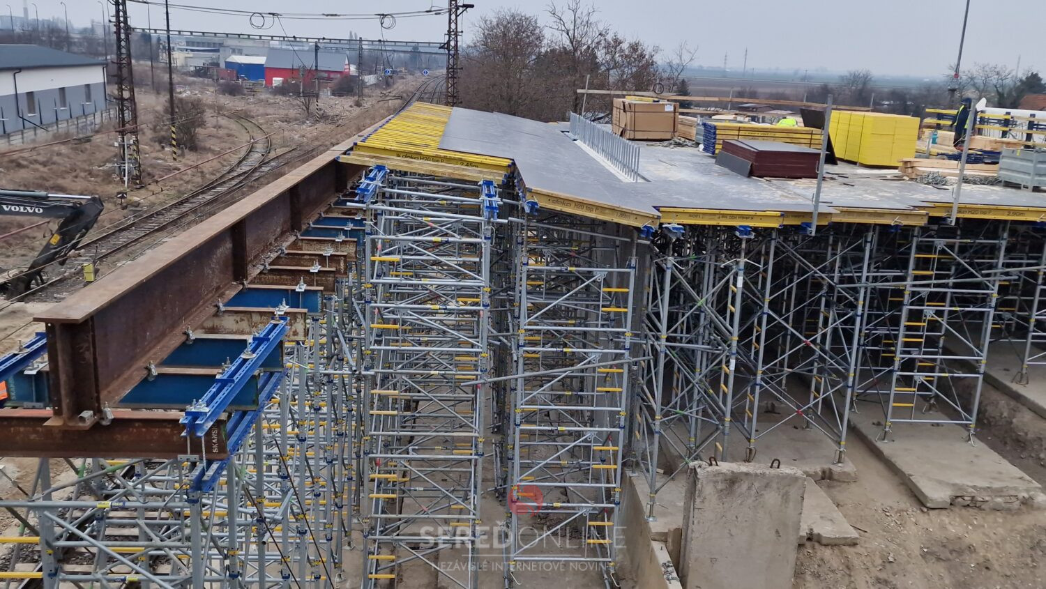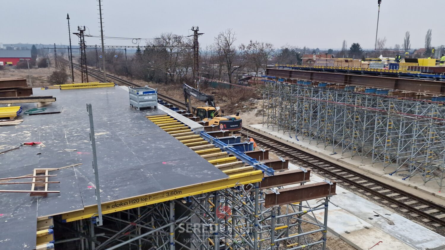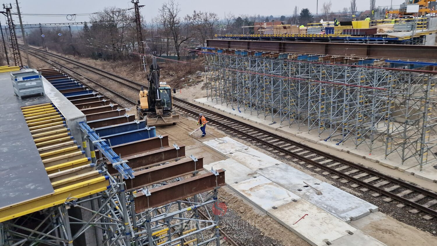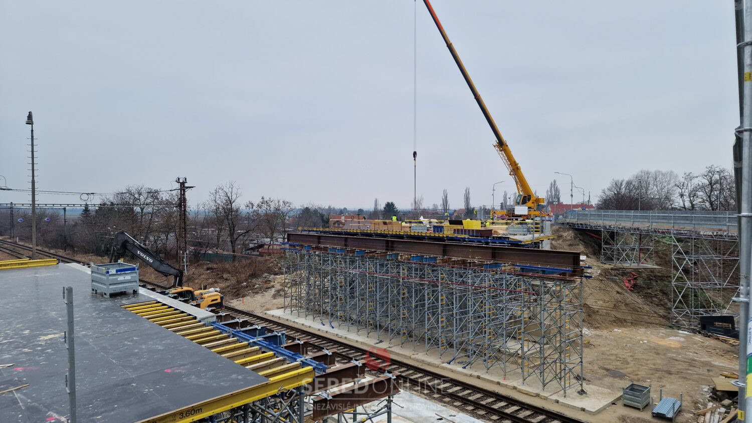 Sereď | Výstavba mosta ponad železnicu v Seredi pokračuje. V tomto týždni je vidieť ďalšie zmeny aj v koľajisku, kde sa pohybuje ťažká technika.