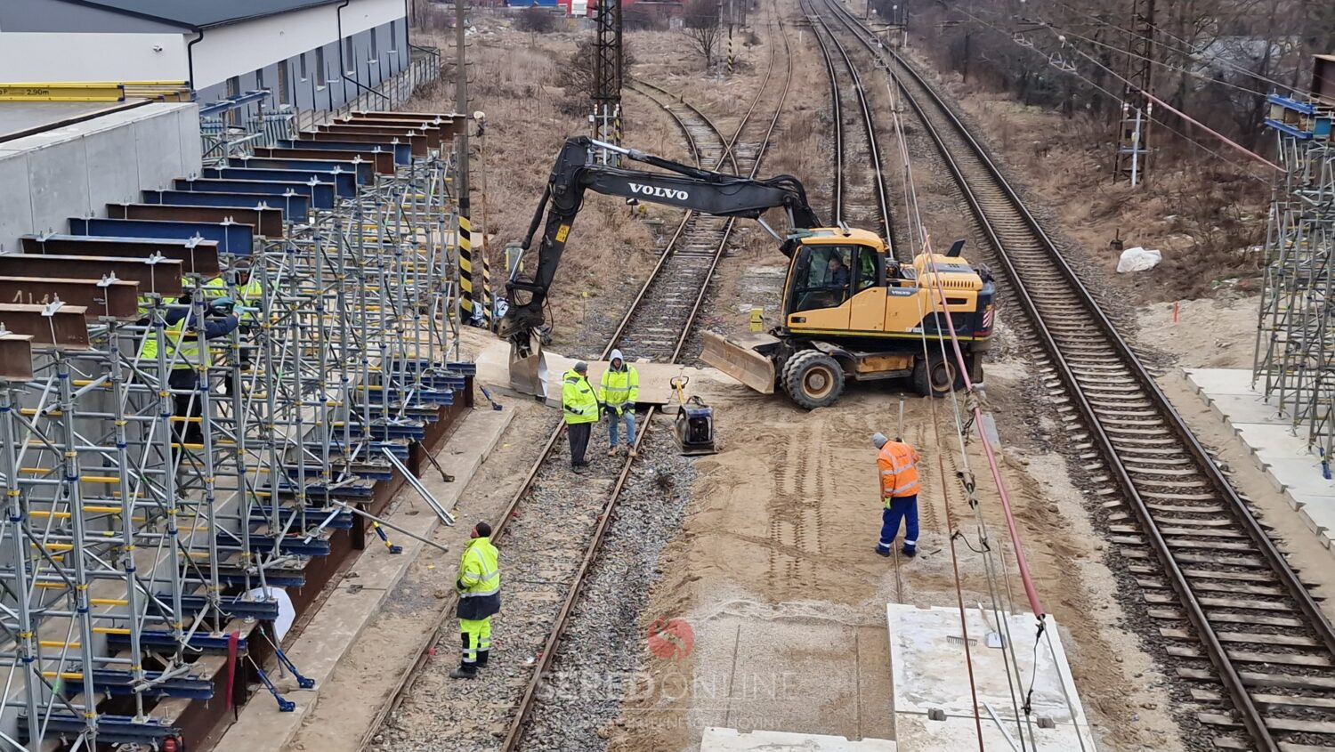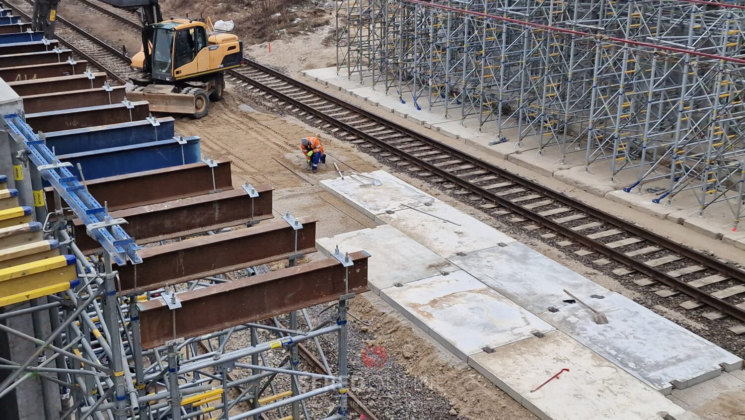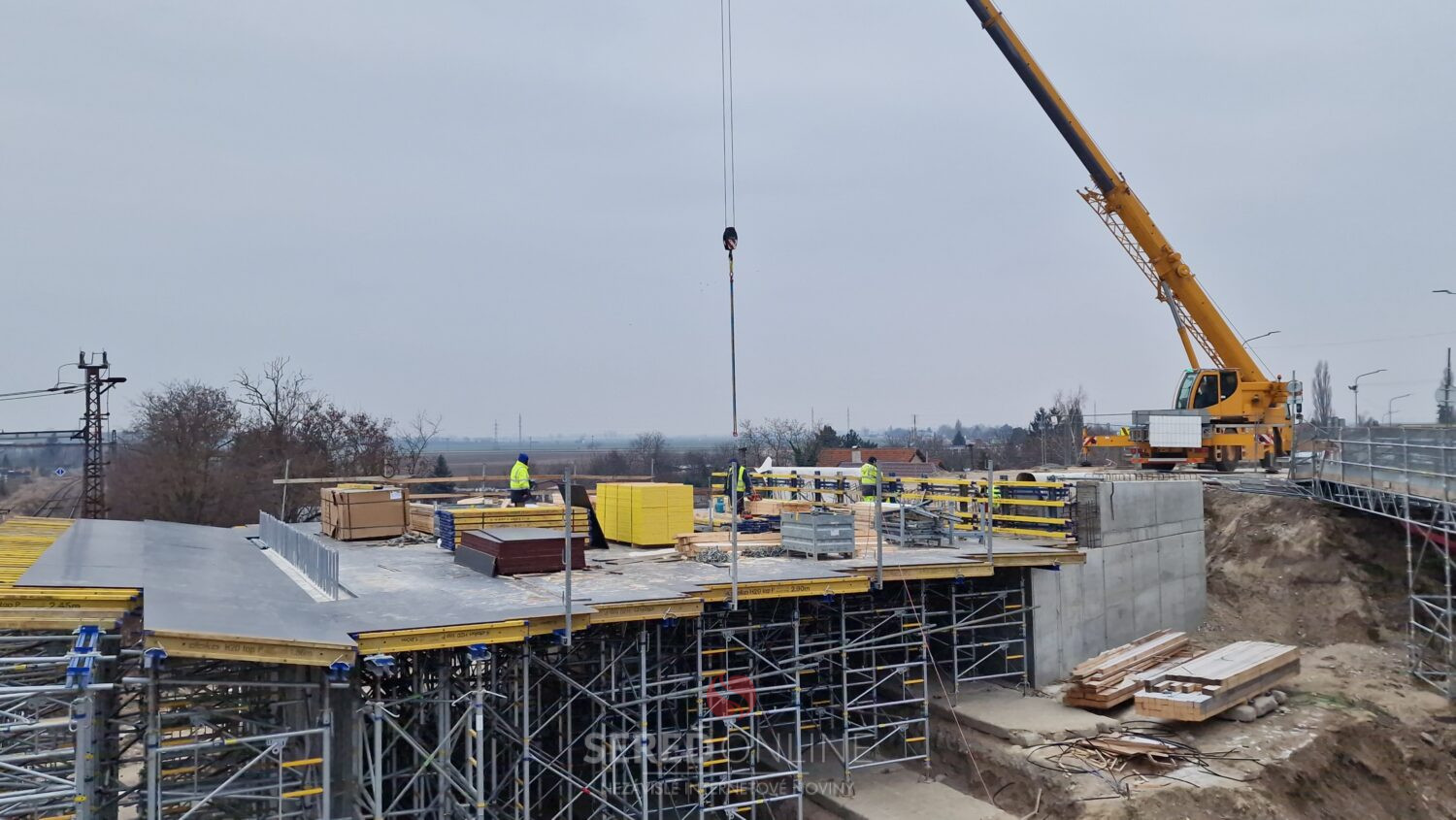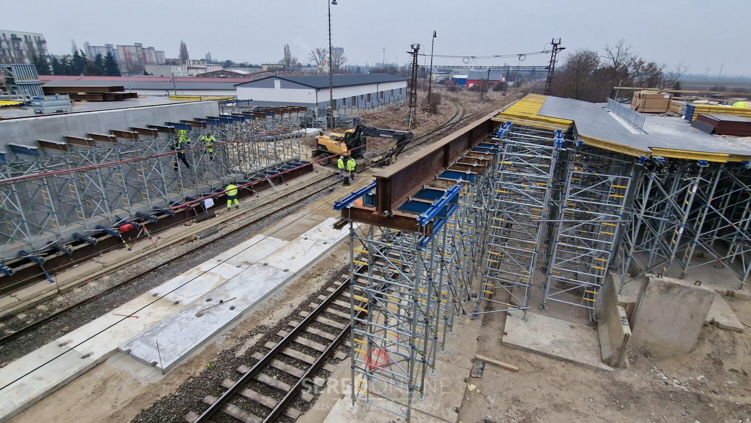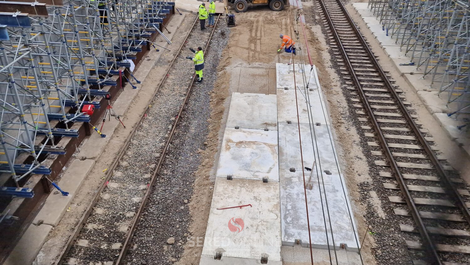Sereď | Výstavba mosta ponad železnicu v Seredi pokračuje. V tomto týždni je vidieť ďalšie zmeny aj v koľajisku, kde sa pohybuje ťažká technika.