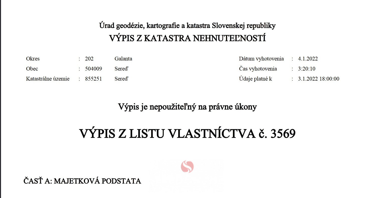Poznámka: v súčasnosti niektoré linky na kataster nehnuteľností a mapy nie sú aktívne. Z dôvodu zachovania autenticity materiálu ich však nemeníme. Všetky informácie však nájdete v priložených PDF súboroch a na fotografiách.