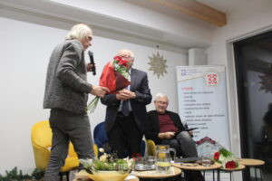 Ešte predtým však zaznel odkaz prof. M. Danaja mladým autorom, že krása spočíva v rôznorodosti života. P. Tomašovič ocenil, že na stretnutí s týmto inšpiratívnym autorom sme si skutočne uvedomovali bytie tu a teraz a bytie spolu. Za to vyjadril prof. M. Danajovi veľkú vďaku a odovzdal mu krásnu kyticu kvetov za liečenie nielen skalpelom, ale aj slovom. Š. Kuzma zaželal pánovi profesorovi do ďalších rokov, aby k lekárom chodil iba na kávu. Prof. M. Danaj s dojatím priznal, že pred podujatím, na ktoré prišlo veľa jemu známych ľudí, pociťoval trému.