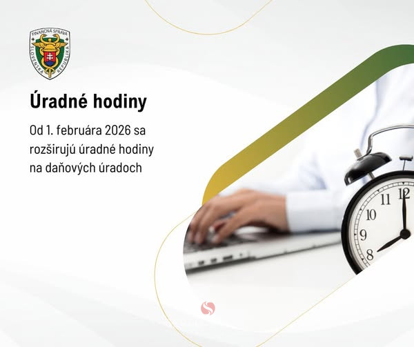 FS SR |MM| Finančná správa informuje verejnosť, že v období od 1. februára 2026 do 31. marca 2026 dochádza k dočasnej úprave úradných hodín na všetkých klientskych zónach daňových úradov a ich organizačných zložiek.