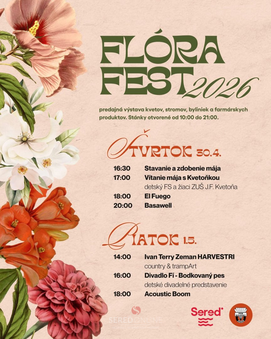 DK Sereď | Jarné podujatie, ktoré každoročne víta máj farbami a hudbou, je opäť tu! Príďte si vychutnať predajnú výstavu kvetov, stromov, byliniek a farmárskych produktov. Stánky budú otvorené od 10:00 do 21:00 hod.