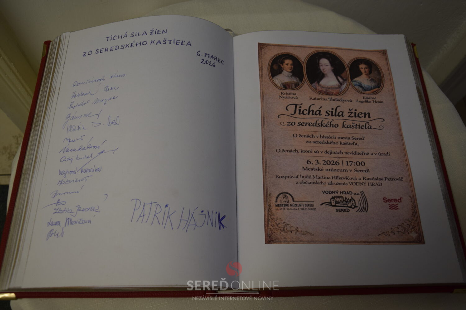 Stretnutie otvoril vedúci múzea Róbert Daňo, ktorý privítal hostí, medzi nimi aj primátora mesta Ondreja Kurbela. O osudoch aristokratických žien zo seredského kaštieľa následne rozprávala Martina Hilkovičová, ktorú dopĺňal Rastislav Petrovič, obaja z občianskeho združenia Vodný Hrad. Myšlienka pripraviť besedu vznikla podľa organizátorov spontánne počas príprav väčšieho historického projektu, ktorý sa v Seredi plánuje na september 2026. „Podujatie bude mať názov Grófky zo seredského kaštieľa – Aj grófky sú len ženy. Pri zbieraní a skompletizovaní podkladov som si uvedomila, že keďže sa blíži Medzinárodný deň žien, práve tieto tiché polovičky panovníkov si zaslúžia vlastné samostatné podujatie, aby sme si ich pripomenuli,“ povedala Martina Hilkovičová. Zároveň prezradila, že v spolupráci s dramatickým krúžkom Gymnázia Vojtecha Mihálika pod vedením Kataríny Valábkovej pripravujú na spomínaný september v Zámockom parku divadelné predstavenie. Prostredníctvom študentov budú priblížené práve príbehy grófok, ktoré kedysi žili v seredskom kaštieli.