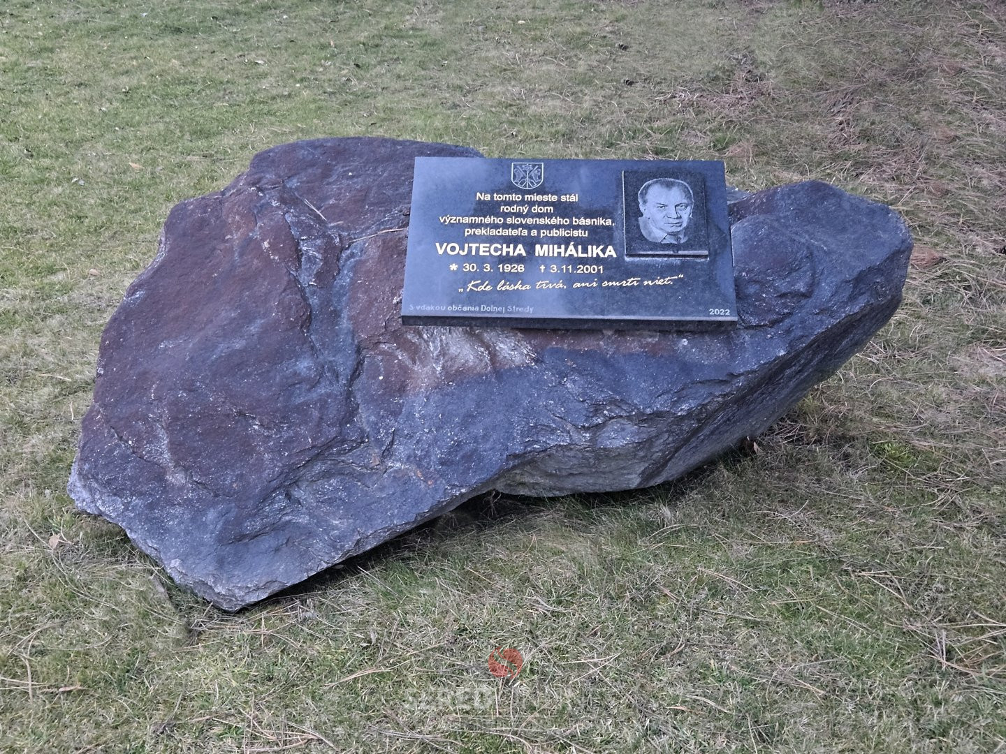 Vojtech Mihálik (30. marec 1926 – 3. november 2001) sa narodil v Dolnej Strede, kde prežil detstvo a prvé roky života. Na mieste jeho rodného domu obec v roku 2022 odhalila pamätnú tabuľu ako dôstojnú pripomienku tejto významnej osobnosti ( viď foto ). Starosta obce Ľuboš Šúry uviedol: „Sme hrdí na to, že práve v našej obci sa narodil a vyrástol významný slovenský básnik a publicista Vojtech Mihálik. Jeho život a dielo sú inšpiráciou nielen pre našich obyvateľov, ale pre celý región a sme radi, že môžeme pripomínať jeho odkaz a šíriť jeho kultúrne a literárne dedičstvo.”
