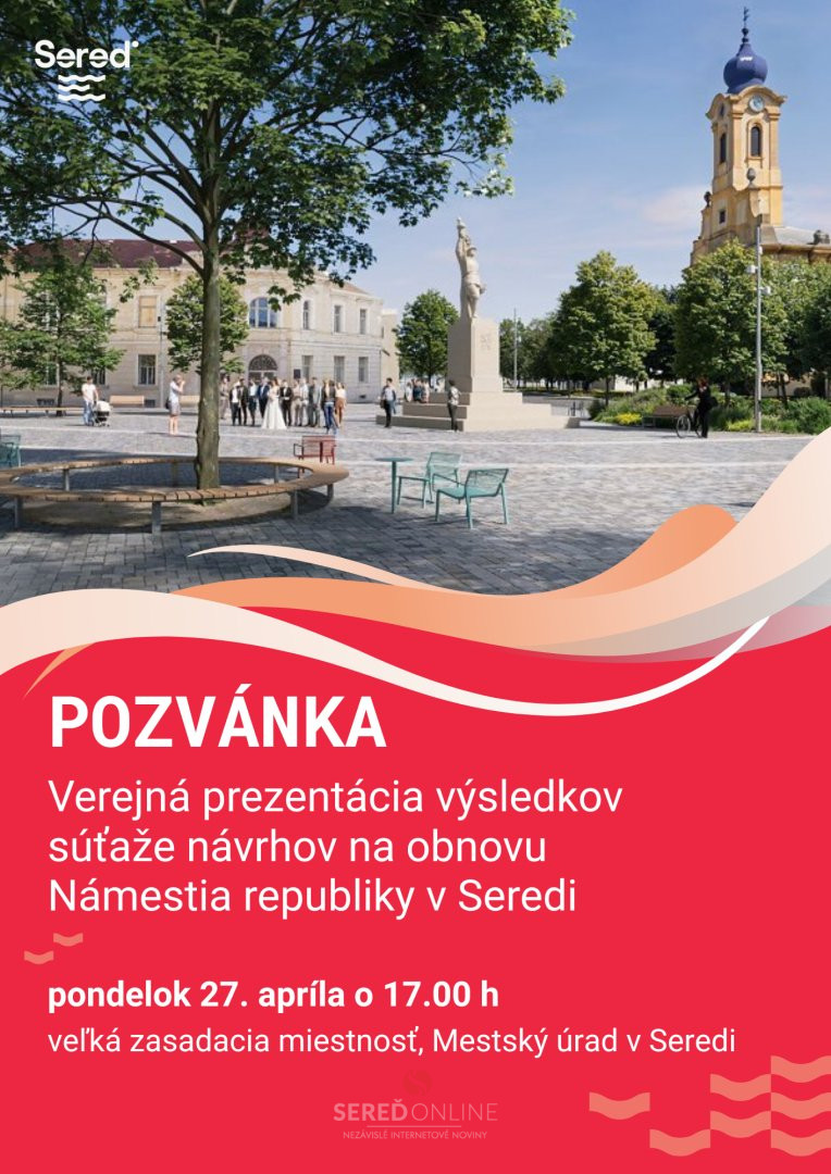 Mesto Sereď | Historicky prvú verejnú architektonicko-urbanistickú súťaž návrhov na obnovu Námestia republiky v Seredi vyhral ateliér harcarikarchitekti z Bratislavy. Cieľom súťaže bolo nájsť kvalitné riešenie pre jeden z najvýznamnejších verejných priestorov v centre mesta. Ako by sa mohlo Námestie republiky v budúcnosti zmeniť, čo priniesol víťazný návrh a aké riešenia architekti navrhli, sa verejnosť dozvie na verejnej prezentácii výsledkov súťaže. Uskutoční sa v pondelok 27. apríla 2026 o 17.00 h vo veľkej zasadacej miestnosti Mestského úradu v Seredi.