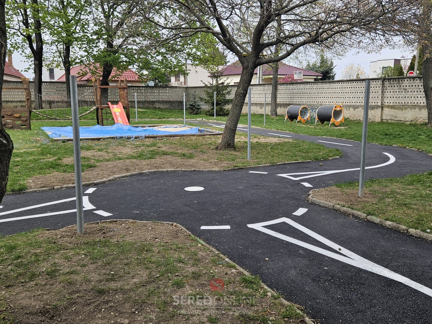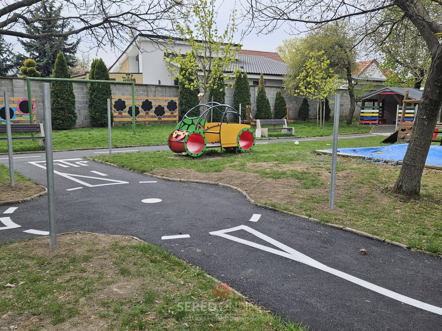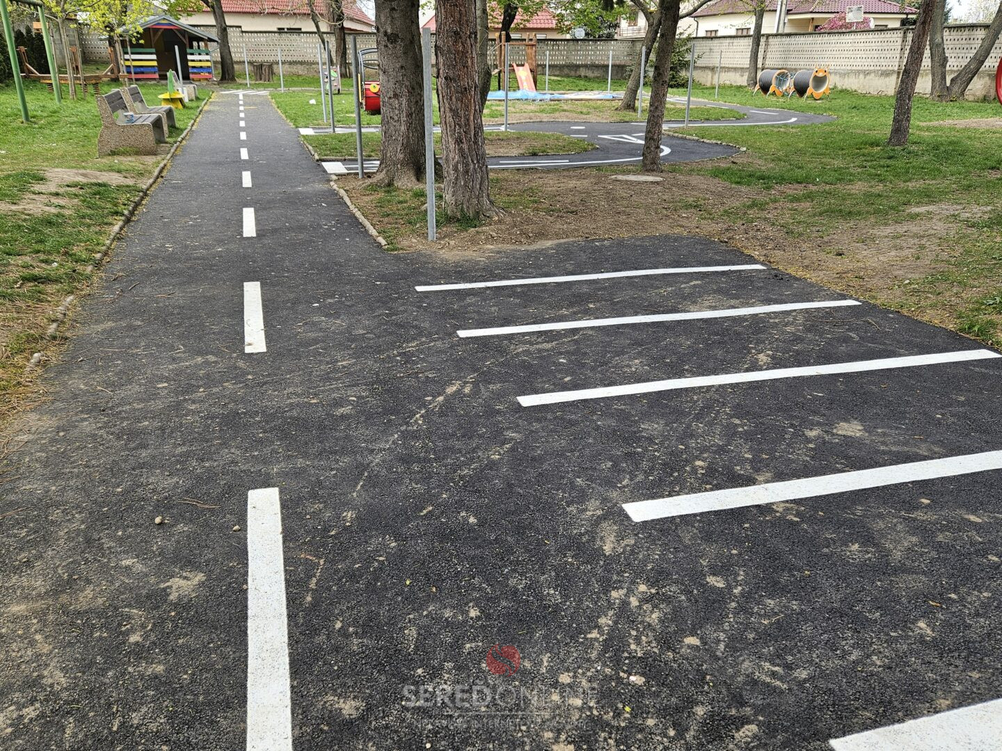 Na realizácii sa aj tento raz podieľala spoločnosť Današ Group s.r.o. z Veľkého Zálužia. Dopravné cestičky dostali nový asfaltový povrch a boli doplnené o značenie, ktoré verne približuje reálne situácie v cestnej premávke a pomáha deťom osvojovať si jej základné pravidlá prirodzenou formou hry.