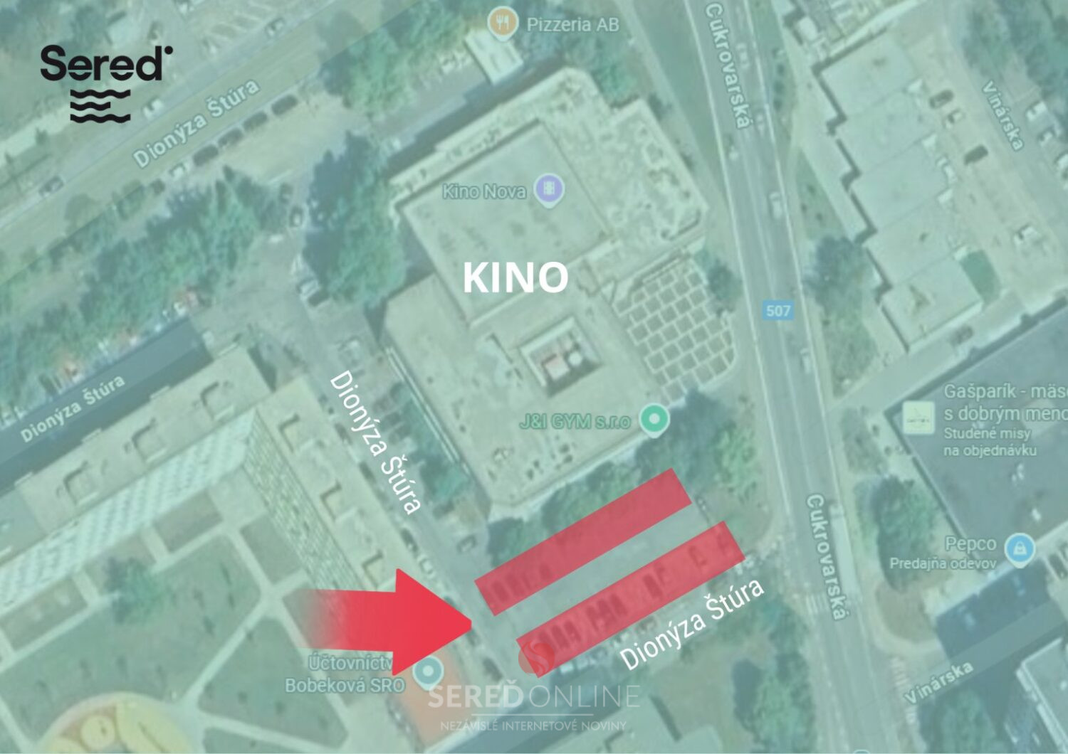 Mesto Sereď |  Mesto Sereď oznamuje, že v dňoch 2. a 3. októbra 2025 (štvrtok, piatok) v čase od 8.00 do 17.00 hod. bude na ulici D. Štúra pri Kine NOVA prebiehať obnova vodorovného dopravného značenia (parkovacie miesta). Súčasne bude odstránené staré a osadené nové zábradlie.
