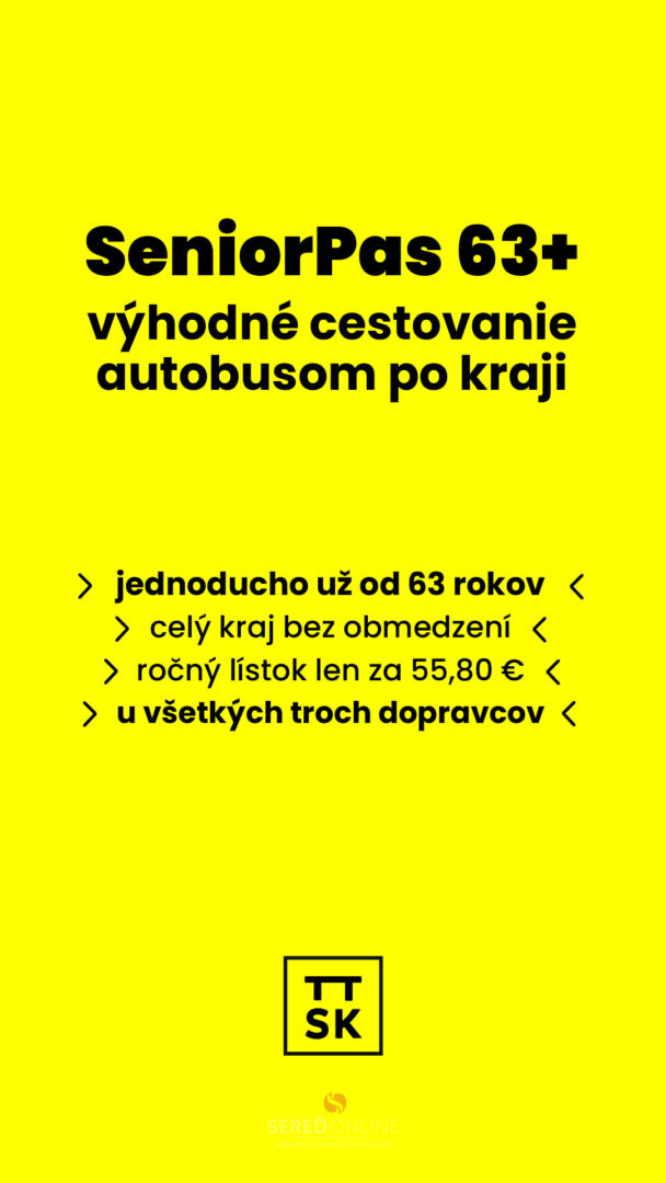 SeniorPas 63+ prináša jednoduchosť, istotu a výraznú úsporu oproti doterajšiemu zónovému cestovnému. Platí na celom území kraja a umožňuje pohodlné a neobmedzené cestovanie v akomkoľvek smere za 55,80 eur ročne.