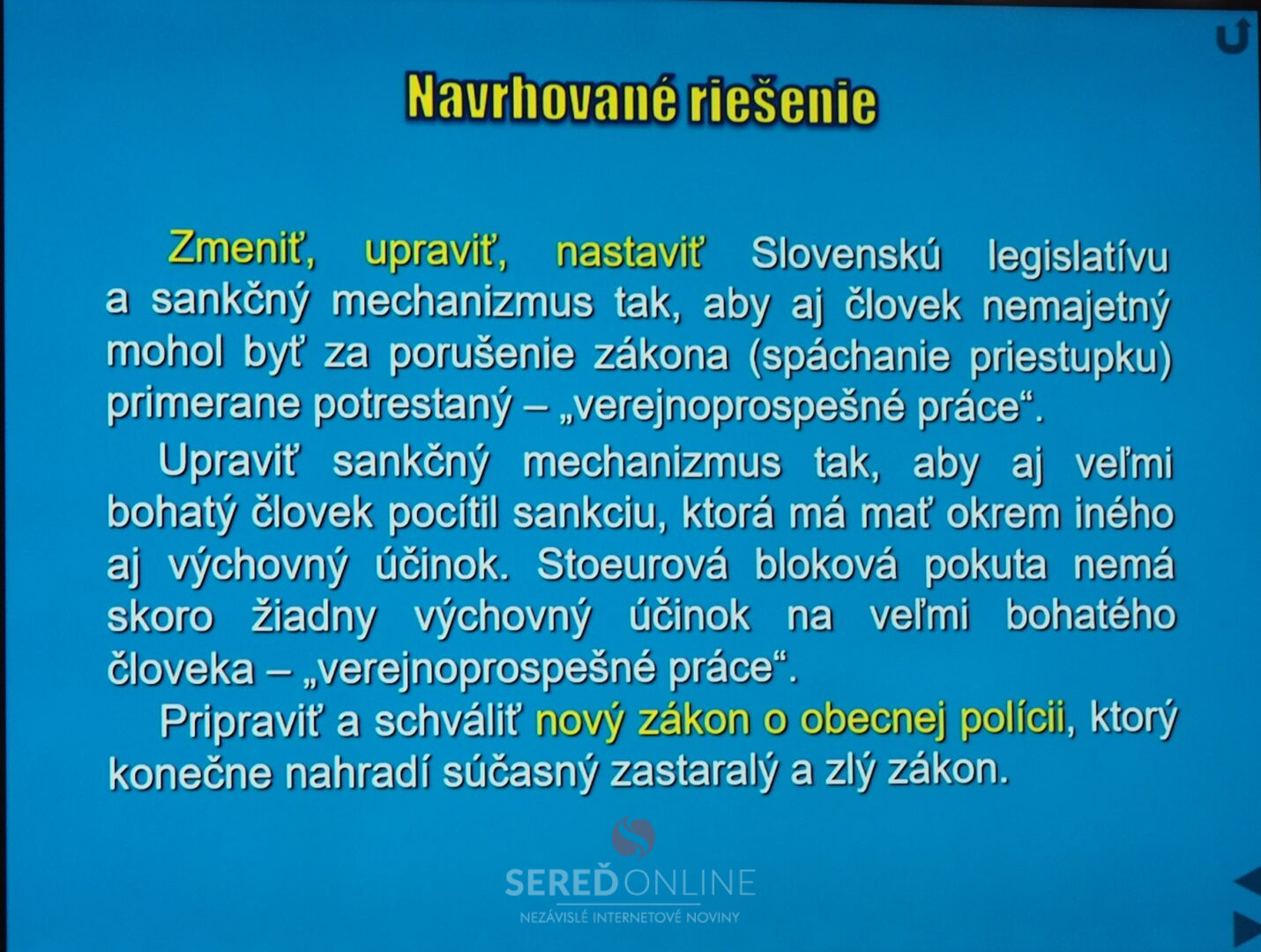 Kľúčovým bodom konferencie bolo pripravovaný zákon o obecnej polícii, ktorý by mal posilniť kompetencie samospráv pri zabezpečovaní verejného poriadku. Súčasný stav zhodnotí Ing. Slavomír Pavelčák, PhD., LL.M., prezident Združenia náčelníkov obecných a mestských polícií Slovenska. Skúsenosti z Českej republiky predstavil Mgr. Bc. Martin Macháček, MBA, predseda Svazu obecních a městských policií ČR. Do diskusie sa zapojili aj odborníci z Ministerstva vnútra SR a Únie miest Slovenska.