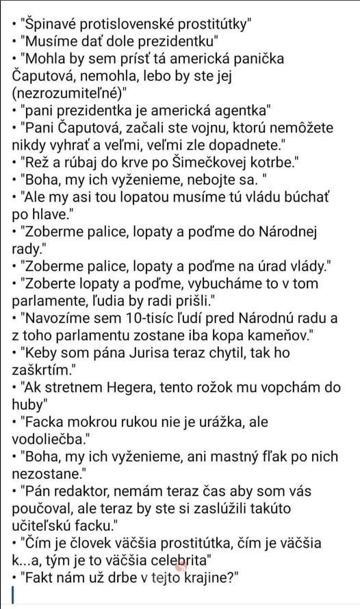 Dnešný rozsudok som si samozrejme nemohol nevšimnúť. Atentátnik je v podstate úbožiak, je len nástrojom nenávisti, ktorú v ňom tak poctivo budovali médiá a opoziční politici. Je nespravodlivé, že kým on bude v podstate doživotne zatvorený v cele, jeho učitelia budú vykrikovať na námestiach a vyučovať ďalšieho nešťastníka, ktorý podľahne ich nenávisti a vykoná politickú spravodlivosť. Kto bude obeťou neviem, možno ja, možno niekto iný, ale obeť bude.“