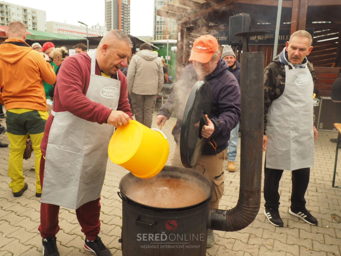 Miroslav Košírer | Bratislava |   Na trhovisku sa konala charitatívna súťaž vo varení guláša. Výťažok z akcie podporí opustené deti. Súťažilo dvanásť družstiev.