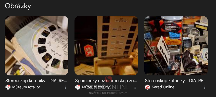 Nielen deti, ale aj dospelí z mladšej generácie obdivujú pohľad na diapozitívy cez ručnú manuálnu prehliadačku – STEREOSKOP.