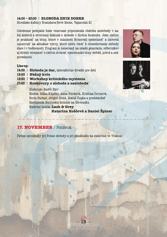 16/11 – Sloboda znie dobre (celodenný program + koncerty Lash & Grey, Katarína Koščová a Daniel Špiner)