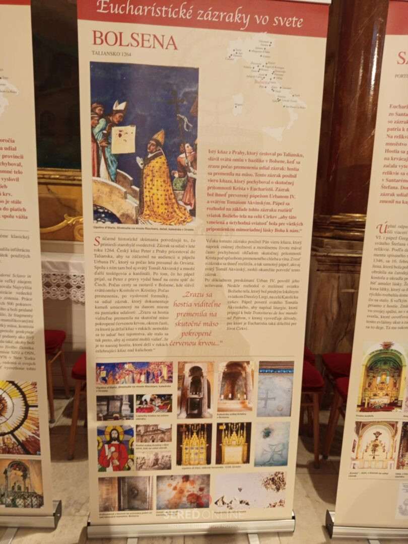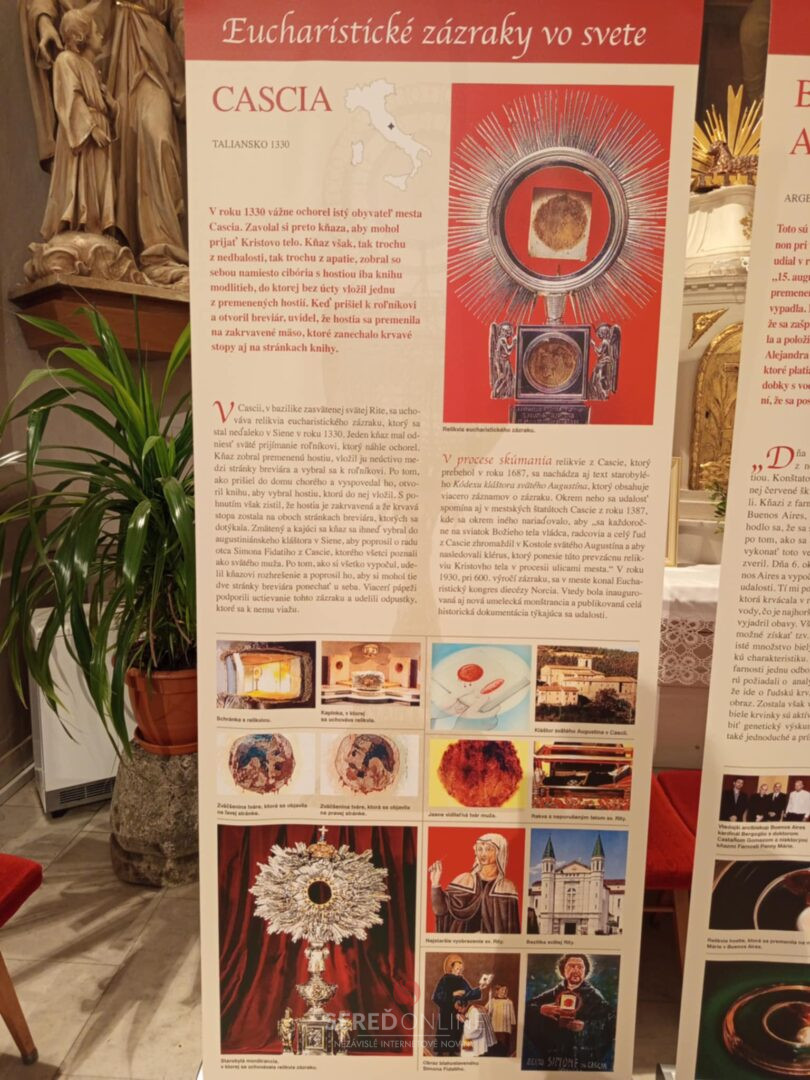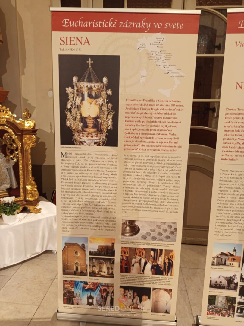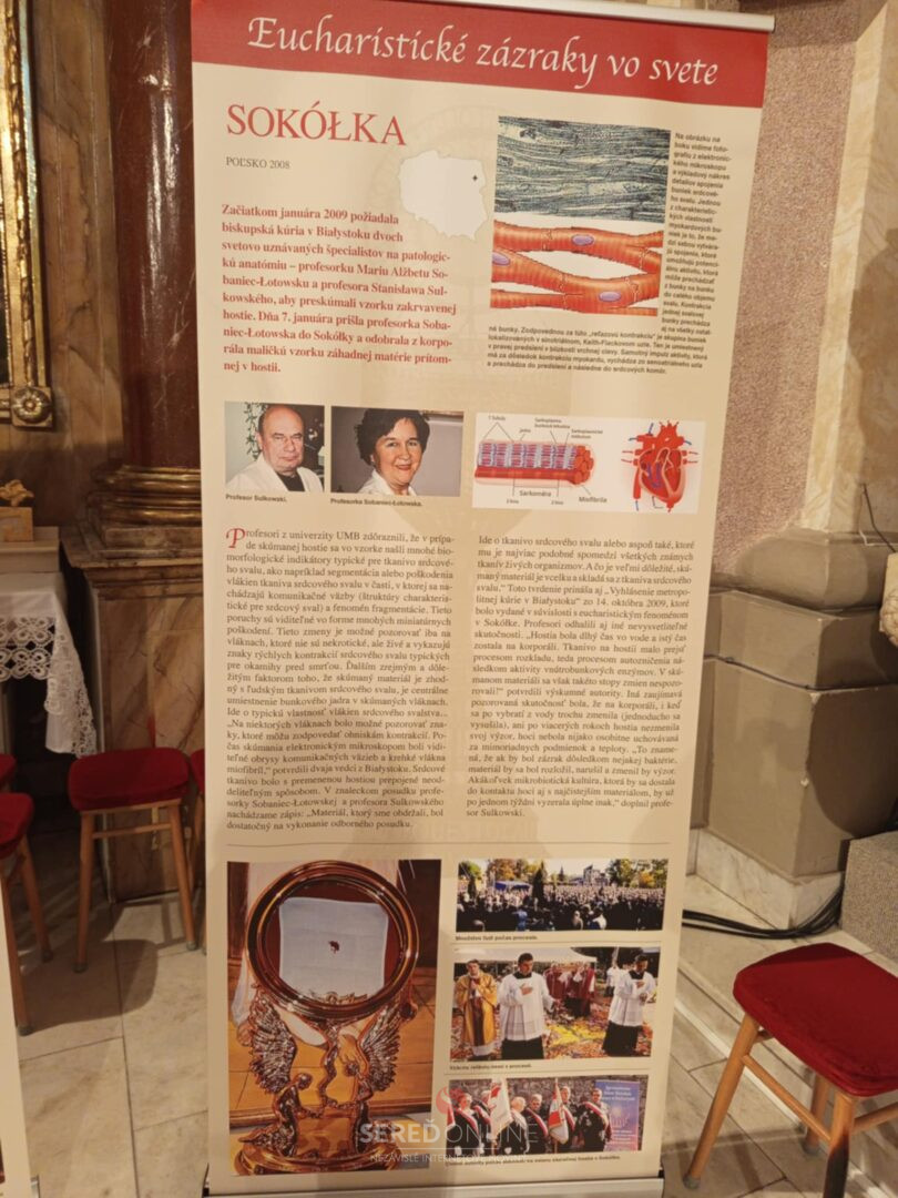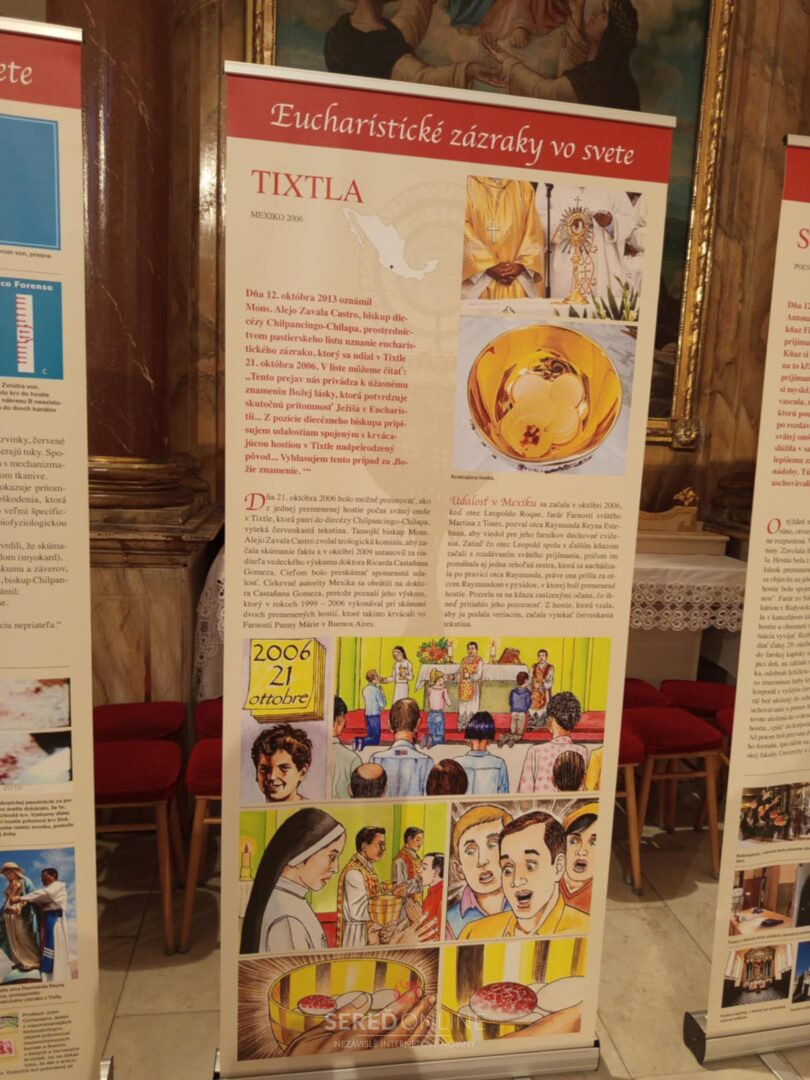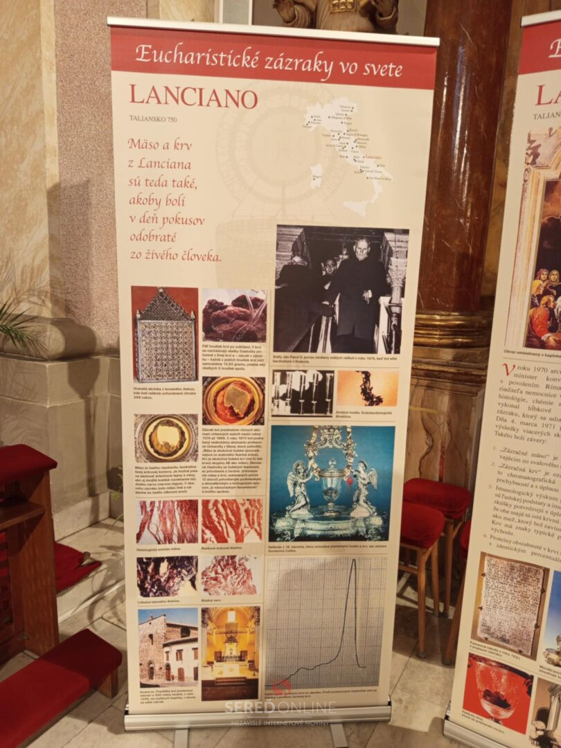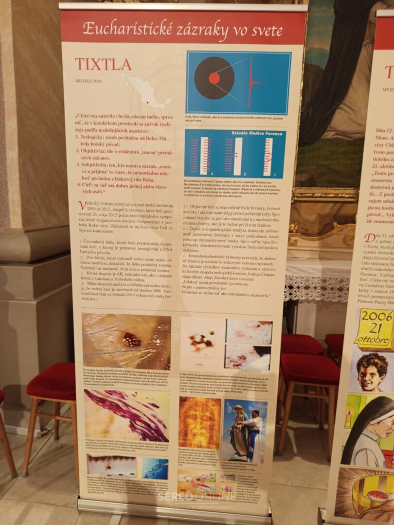 Iveta Tóthová | V týždni od pondelka 3. novembra do nedele 9. novembra mali veriaci v Seredi jedinečnú príležitosť navštíviť putovnú výstavu eucharistických zázrakov, ktorá bola sprístupnená v kostole sv. Jána Krstiteľa. Podujatie pripravila televízia TV LUX, známa svojimi projektmi zameranými na šírenie kresťanských hodnôt.
