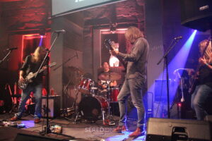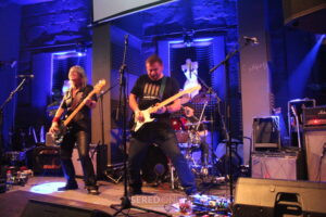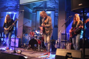 Clivé myšlienky mi však dlho nevydržali, a to vďaka ďalšej vystupujúcej kapele: anglickým The Blues Boy Kings. S jadrom skupiny, ktoré tvorí manželský pár Jason North (gitara, spev) a Samantha North (basová gitara, spev), vystúpil špeciálny hosť – bubeník Jeff Rich (bývalý člen kapely Status Quo). Bolo to poriadne power trio s poriadne hlasným zvukom. Ten som si vychutnala, pretože som sedela rovno vpredu pred reproduktorom. Všetci členovia kapely prekypovali energiou a evidentne si koncert užívali, no najväčšiu pozornosť asi pútala usmievavá basgitaristka a speváčka Samantha v priliehavom čiernom oblečení. Pri pohľade na ňu som si zaspomínala na koncert Suzi Quatro v seredskom amfiteátri v auguste 2018. Jason, ktorého oblečenie dopĺňalo aj originálne tričko Blues Moods, spieval a slajdoval na gitare ako starý bluesman z delty Mississippi. Manželia Northovci čulo komunikovali s obecenstvom a ukázalo sa, že ovládajú aj niekoľko českých slov. Na živelnú, explozívnu show poslucháči reagovali búrlivým potleskom a krikom. Okrem prevzatých skladieb (Shake Your Moneymaker, All Your Love, Hideaway a i.) zneli aj vlastné, ako napríklad Don´t Turn Your Back On The Blues, Can´t Get Any Worse (počas ktorej povzbudzovala Samantha obecenstvo, aby tlieskalo do rytmu a spievalo) či So Alone. Neúnavný bubeník Jeff Rich si s chuťou zabubnoval aj v piesni Whatever You Want, pôvodne z repertoáru kapely Status Quo. Koncert zakončila skvele vygradovaná pieseň Sultans Of Swing. Počas jemnej pasáže sa ozýval silný potlesk poslucháčov do rytmu. Napokon nastal ohromný aplauz.