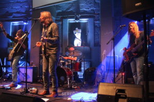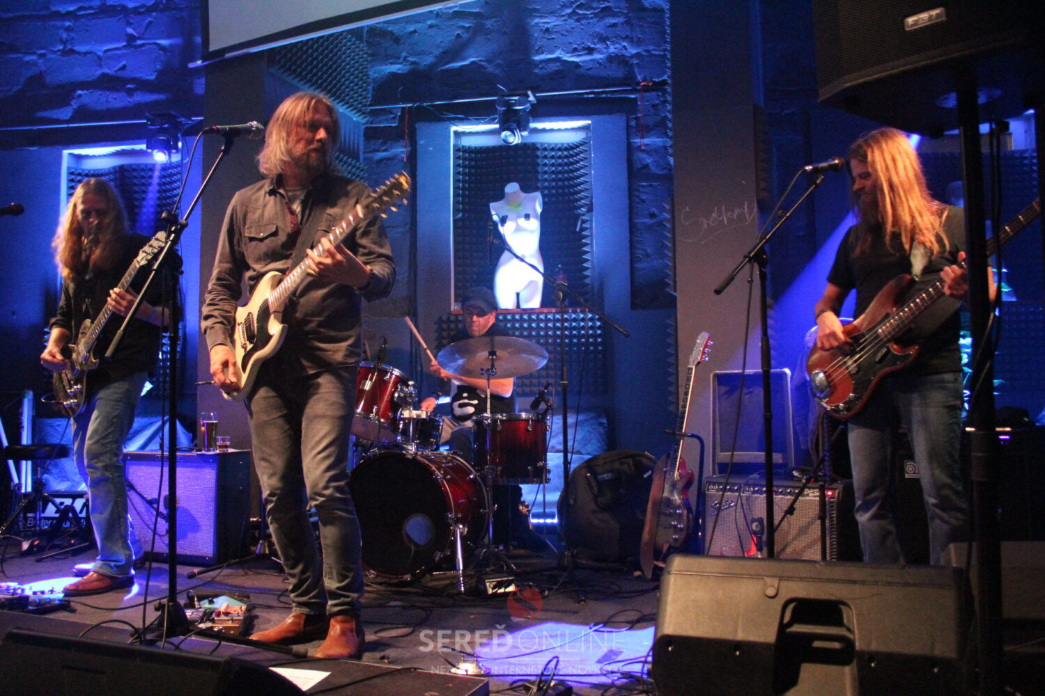Headlinerom večera bola americká kapela The Steepwater Band. Čerpá z klasického rocku, blues a roots music. V repertoári má hlavne vlastné piesne. Tvoria ju: Jeff Massey – spev, gitary, Joe Winters – bicie, perkusie, Eric Saylors – gitary, lap steel, sprievodný spev, Joe Bishop – basová gitara, sprievodný spev. Čo sa týka hlasitosti zvuku, na Angličanov nemali, ale ich hudba bola tiež vynikajúca, rezko rocková a pekne melodická. Do Trnavy zavítali deň po koncerte v Skalici, kde vystúpili s obrovským úspechom. Aj trnavské obecenstvo si získali svojím hudobným majstrovstvom i vľúdnosťou. Už v prvej piesni Please The Believer Eric Saylors roztlieskal obecenstvo do rytmu. Gitaristi počas celého koncertu sólovali odušu, Jeff Massey čaroval aj technikou slide. Len mi bolo trochu ľúto, že Eric Saylors nezahral na lap steele. Spoľahlivá a presná rytmika nemalou mierou prispievala k celkovému elegantnému hudobnému dojmu. V piesni High And Humble zaznelo parádne sólo na bicích, odmenené veľkým krikom a potleskom. Predposledná pieseň koncertu Come On Down bola zase ozdobená sólom basovej gitary a Eric Saylors podnietil obecenstvo k potlesku do rytmu. Mnohí poslucháči sa hýbali podľa hudby, ako im to stiesnený priestor dovoľoval. Jedna poslucháčka si zatancovala aj pred pódiom. Po mohutnom aplauze nasledoval ešte cover piesne Chucka Berryho Little Queenie a následne si obecenstvo vytlieskalo a vykričalo prídavok: cover piesne Stop Breakin´ Down od Roberta Johnsona. Jeff Massey slajdoval, až gitara rozprávala a spievala. Dialóg dvoch gitár, to bol bluesový vesmír. Pieseň sa skončila divokým vygradovaním.