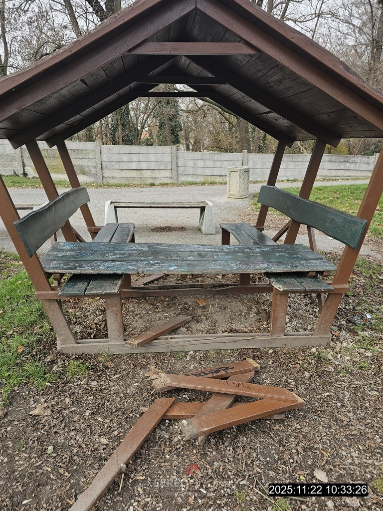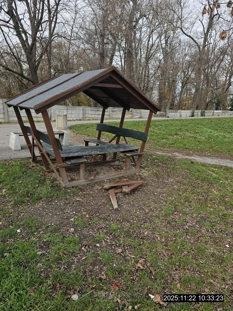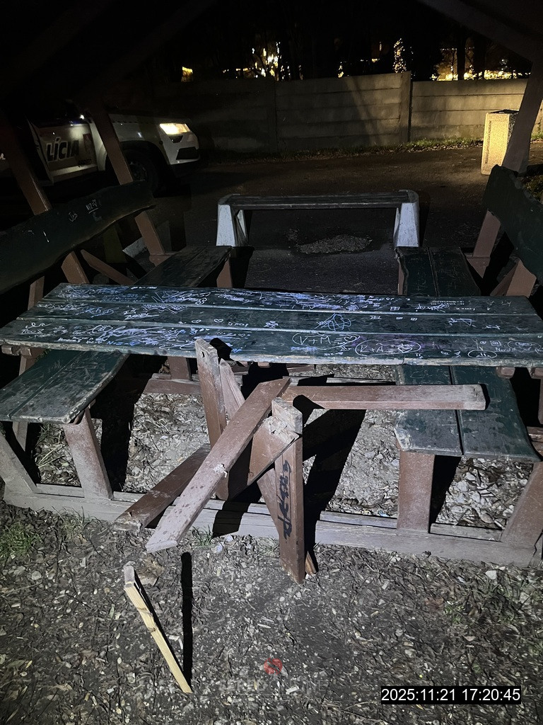 Doposiaľ neznámi páchatelia dňa 20.11.2025 úmyselne poškodili stôl, ktorý bol pevne uchytený v altánku pri zadnej bráne parku za Raketou.