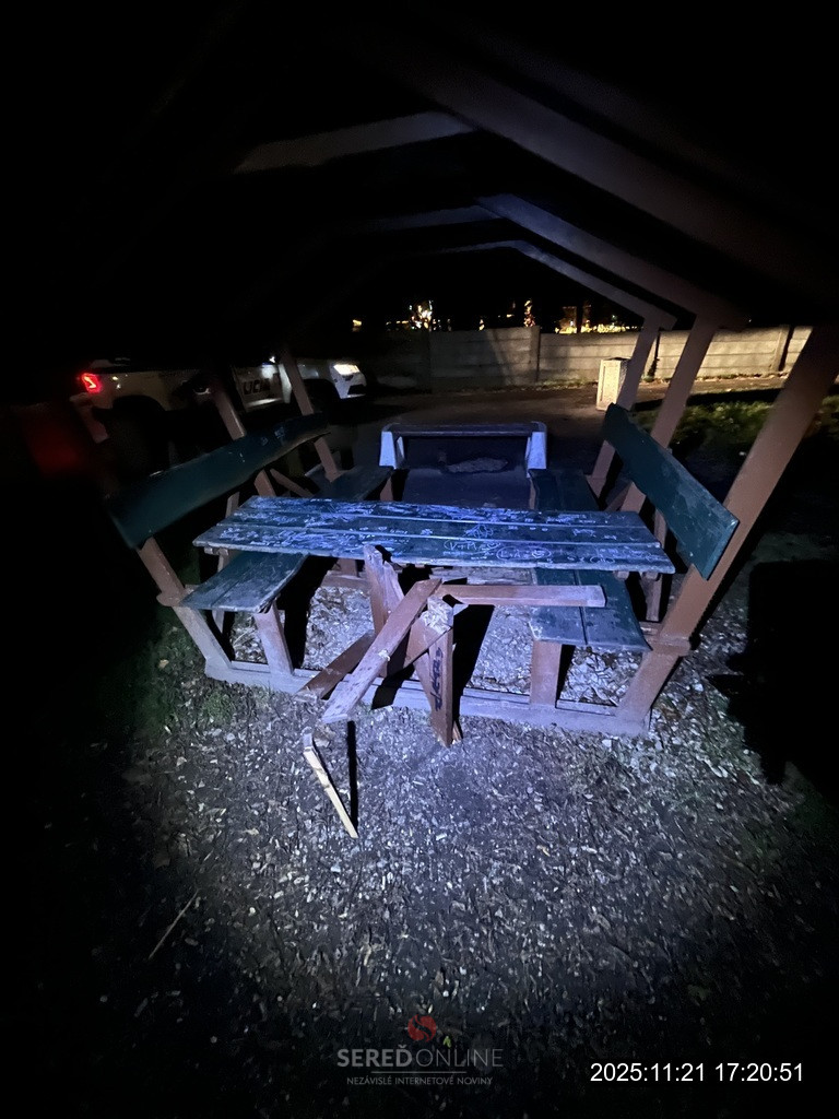 Mestská polícia Sereď | Mestská polícia v Seredi hľadá svedkov, ktorí by mohli prispieť k objasneniu poškodenia stola v altánku pri Rakete.