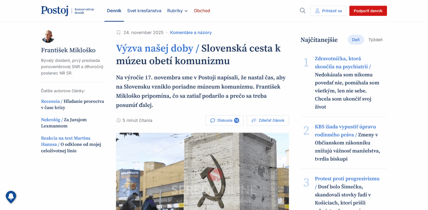 Konzervatívny denník POSTOJ: Výzva našej doby Slovenská cesta k múzeu obetí komunizmu