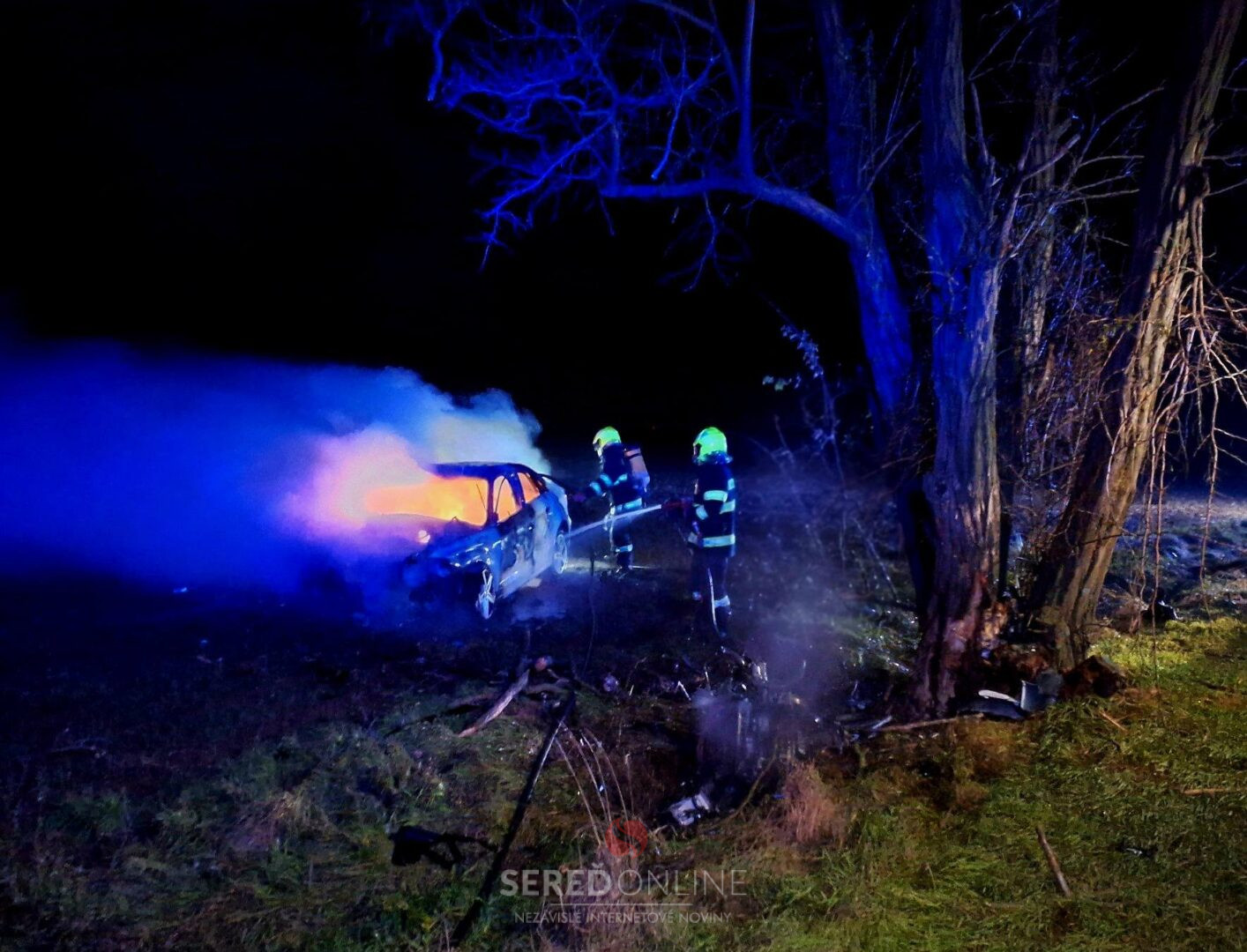 Včera podvečer, krátko pred 19. hodinou, došlo v katastri obce Dvorníky (okres Hlohovec) k dopravnej nehode osobného motorového vozidla, po ktorej nasledoval jeho rozsiahly požiar.