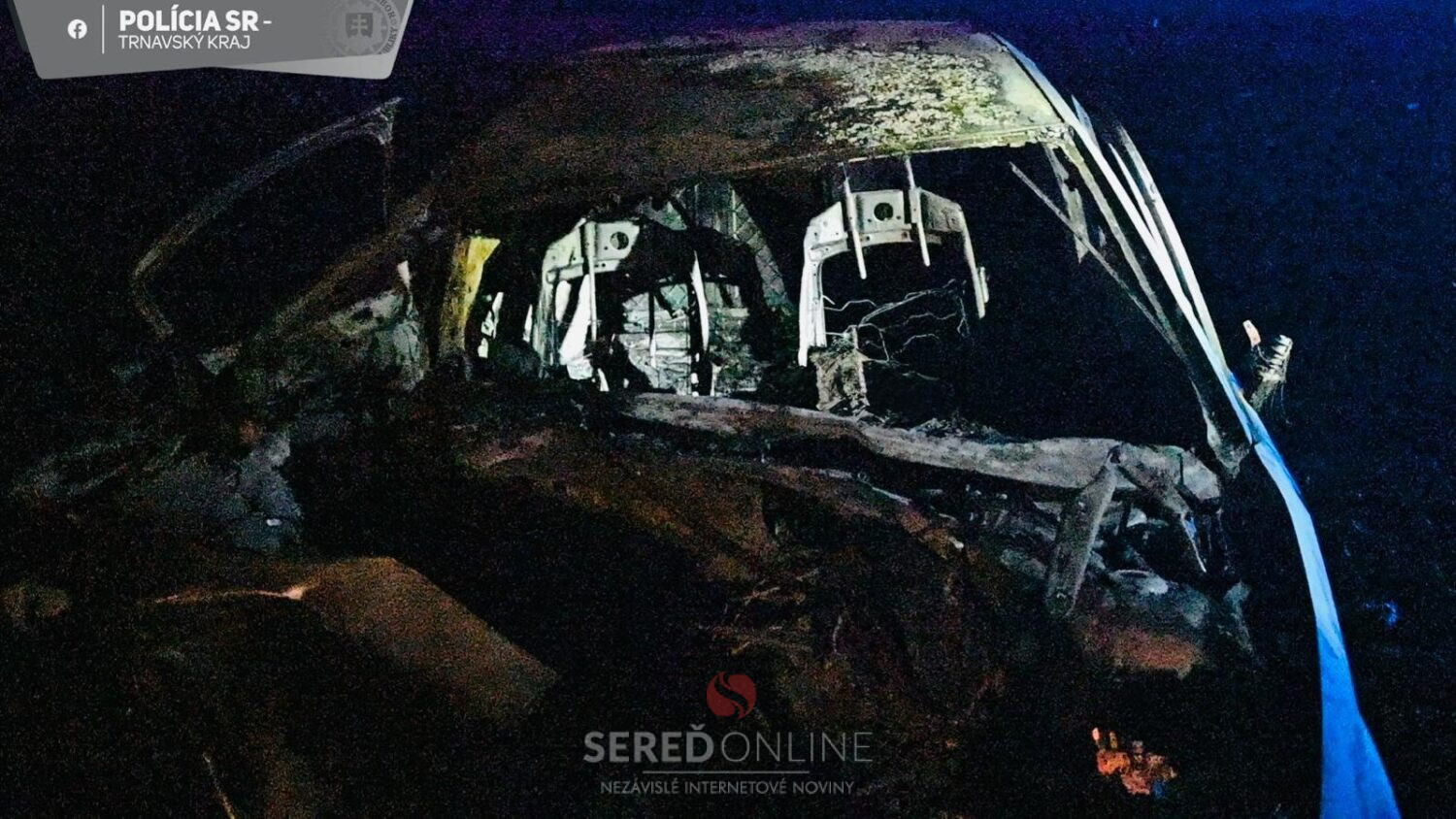 Po príchode hasičov z Hlohovca sa vozidlo nachádzalo v poli približne 10 metrov od cestnej komunikácie a bolo už v pokročilej fáze horenia.