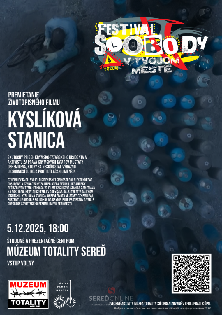 Festival slobody v tvojom meste organizovaný v spolupráci s Ústavom pamäti národa Múzeom totality v Seredi, bol ukončený dnes vo večerných hodinách premietaním filmu Kyslíková stanica.