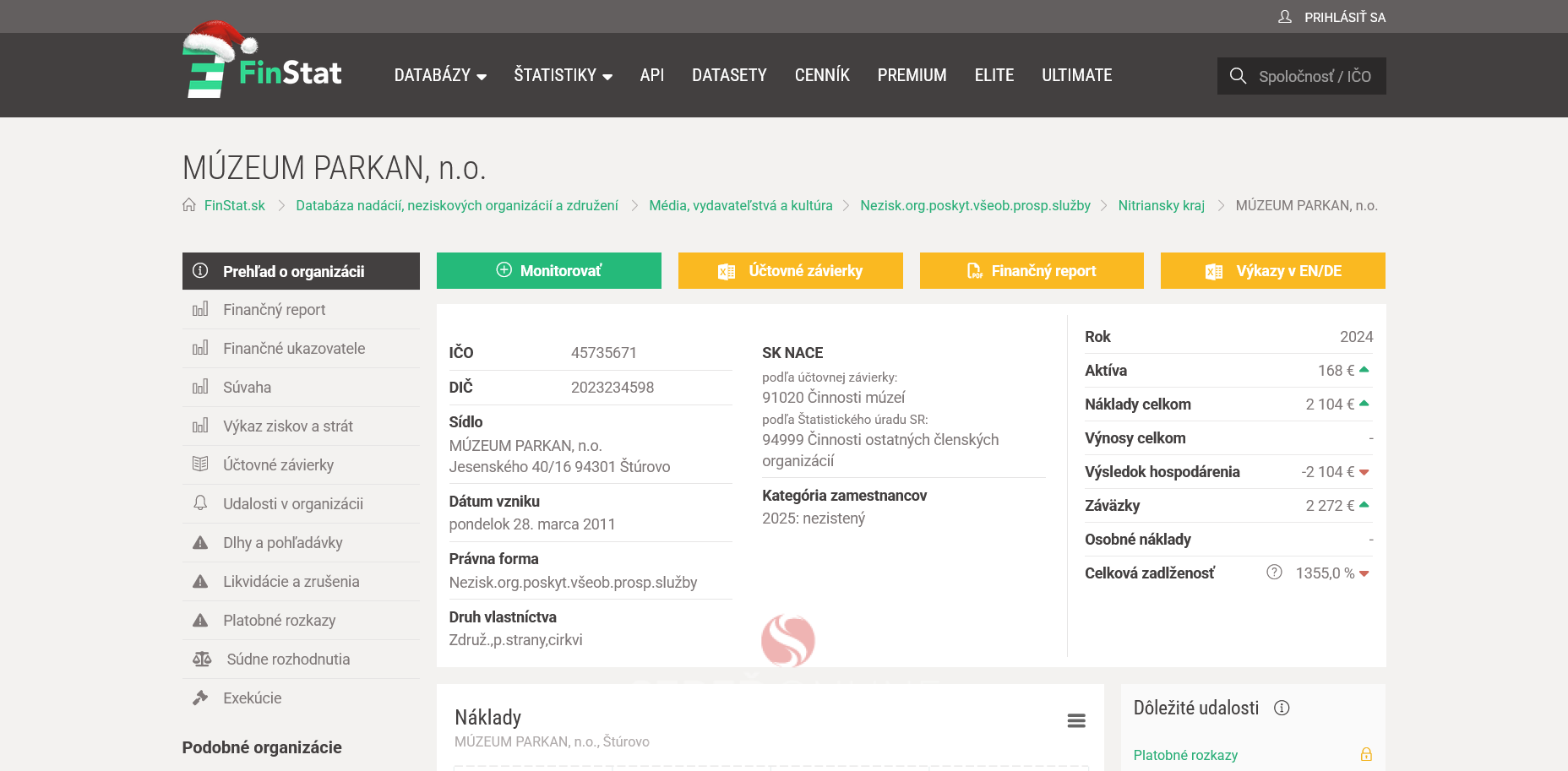 V septembri 2025 Múzeum Parkan n.o. Petra Sklenára st. podľa verejne dostupných údajov skončilo zrušené bez likvidácie.