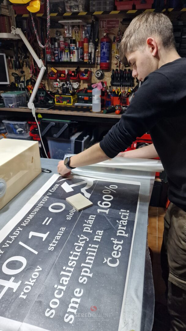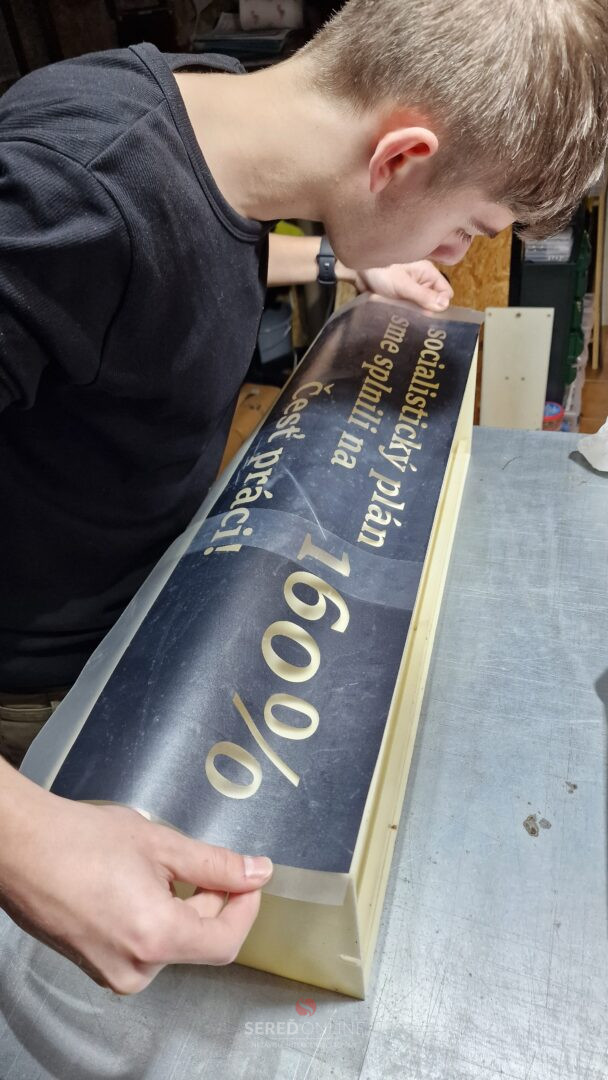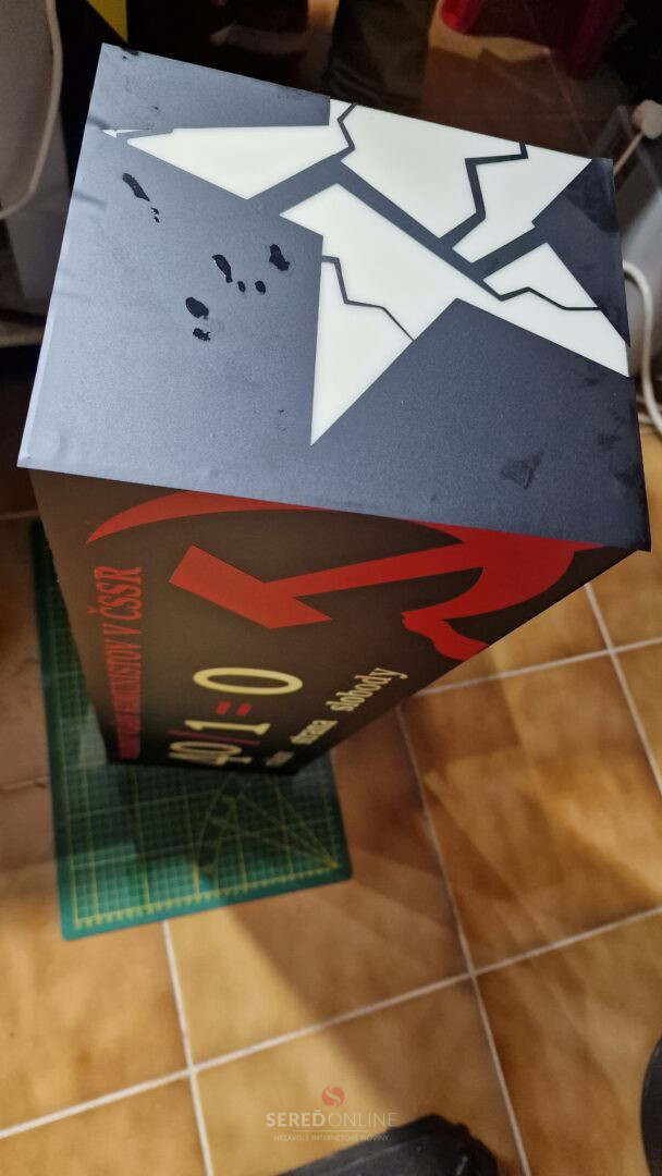 Ďalší zo svetelných interiérových boxov sme dokončili medzi sviatkami. Ide o multifunkčný box s vizuálnym obsahom poukazujúcim na „úspechy“ komunistického vládnutia v socialistickom Československu s funkciou osvetlenia chodby na toalety. Tlmené led svetlo sa aktivuje 360° fotobunkou.