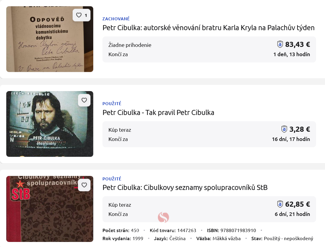 Pre informáciu, originál tzv. „Cibulkových zoznamov“ – len 1. časť sa v súčasnosti predáva za cca 70 Eur, druhá obdobne, ale aj drahšie. Cena samozrejme závisí aj od stavu zachovaného exempláru.